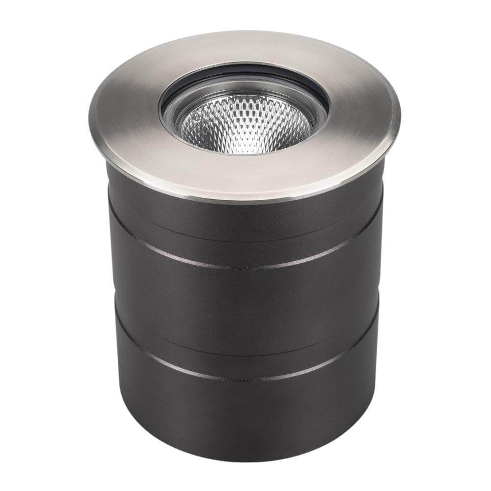 Встраиваемый светодиодный светильник для грунта и пола. Мощность 15Вт, световой поток 1340лм, цвет ТЕПЛЫЙ 3000К. CRI(Ra)>80, угол 20°. Круглый влагозащищенный корпус IP67, нержавеющая сталь. Экран закалённое стекло. Питание AC230V, 15Вт. Размер DxH Ø110x85мм. Установка в отверстие DxH Ø100x120мм.