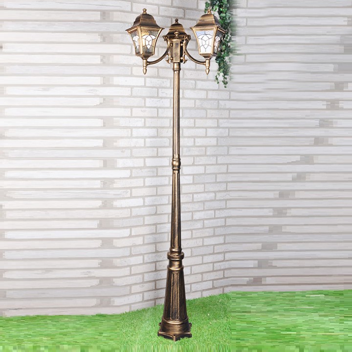 Уличный трехрожковый светильник на столбе IP44 Altair F/3 черное золото Elektrostandard Altair a025024. Бренд Elektrostandard это современные, разумные, качественные, надёжные и стильные интерьерные и экстерьерные светильники, трековые системы.