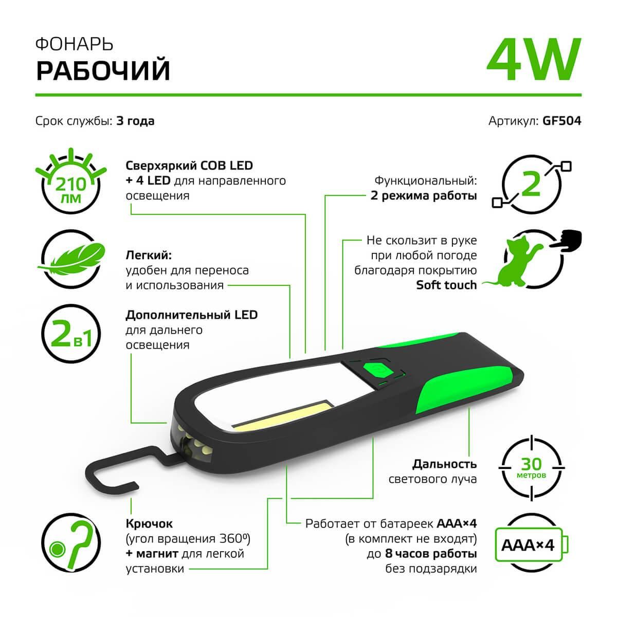 Рабочие фонари от Gauss это подходящие решение, которое поможет подсветить даже труднодоступное пространство во время ремонтных работ дома, на даче, мастерской. В большинстве моделей фонарей используется современный li-ion аккумулятор, способный поддерживать длительное автономное освещение и проводить его зарядку от штатного USB разъема в вашем автомобиле или ноутбука. Прочная конструкция и мощный световой поток позволит с уверенностью решить любые задачи по освещению и обеспечит длительную службу.