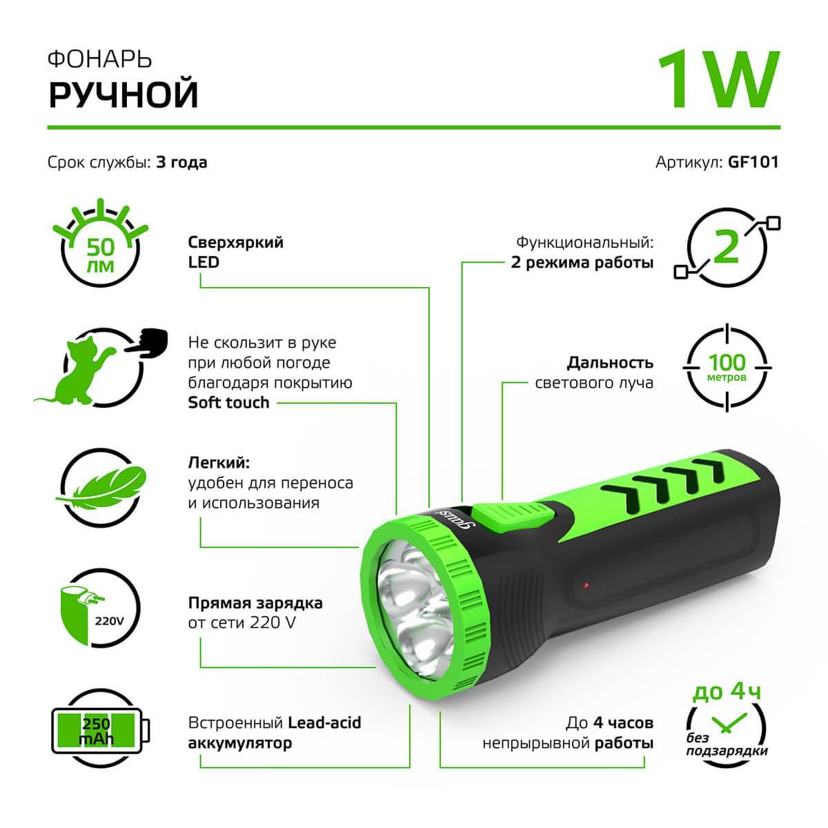 Универсальный светодиодный фонарь от Gauss отличается компактностью и сверх-лёгкостью, поэтому их удобно брать с собой на прогулки, в поездки. Работает такой источник света от аккумулятора или от батареек. В случае с аккумулятором и в зависимости от модели, фонарь удобно заряжается при помощи USB-провода, поставляемого в комплекте или от бытовой розетки. От одного полного заряда фонарь работает непрерывно свыше 6 часов. В фонарях Gauss установлен яркий современный светодиод, снабженный качественным светоотражателем. Модели отличаются высокой для компактного фонаря дальностью светового луча от 40 до 300 метров. Универсальный и надежный фонарь от Gauss с высокой яркостью поможет четко ориентироваться в темное время суток и быть всегда под рукой!