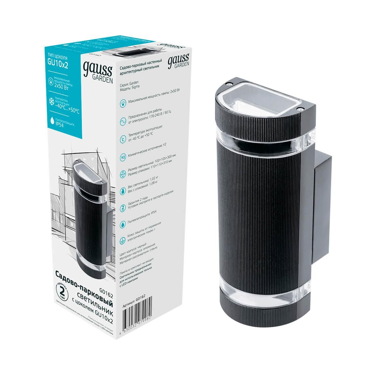 Современный лаконичный дизайн настенного садово-паркового светильника Gauss Enigma способен преобразить фасад любого здания! Садово-парковый светильник Gauss Enigma обладает цоколем GU10. Влагонепроницаемый алюминиевый корпус с высокой пыле и влагозащитой IP54, что позволяет светильнику эффективно работать в любой сезон, даже при -40°C до 50°C. Садово-парковые светильники Gauss Enigma-это прекрасное решение для загородного дома, которое сможет стать частью вашего ландшафтного дизайна, а также обеспечить яркое и долгосрочное общее освещение.