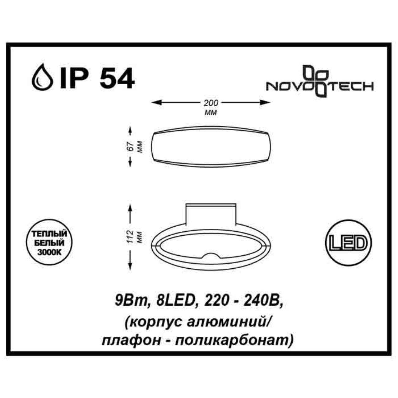 Уличный настенный светодиодный светильник Novotech Kaimas Street 357407 от производителя Novotech. Артикул производителя NOVOTECH_357407.