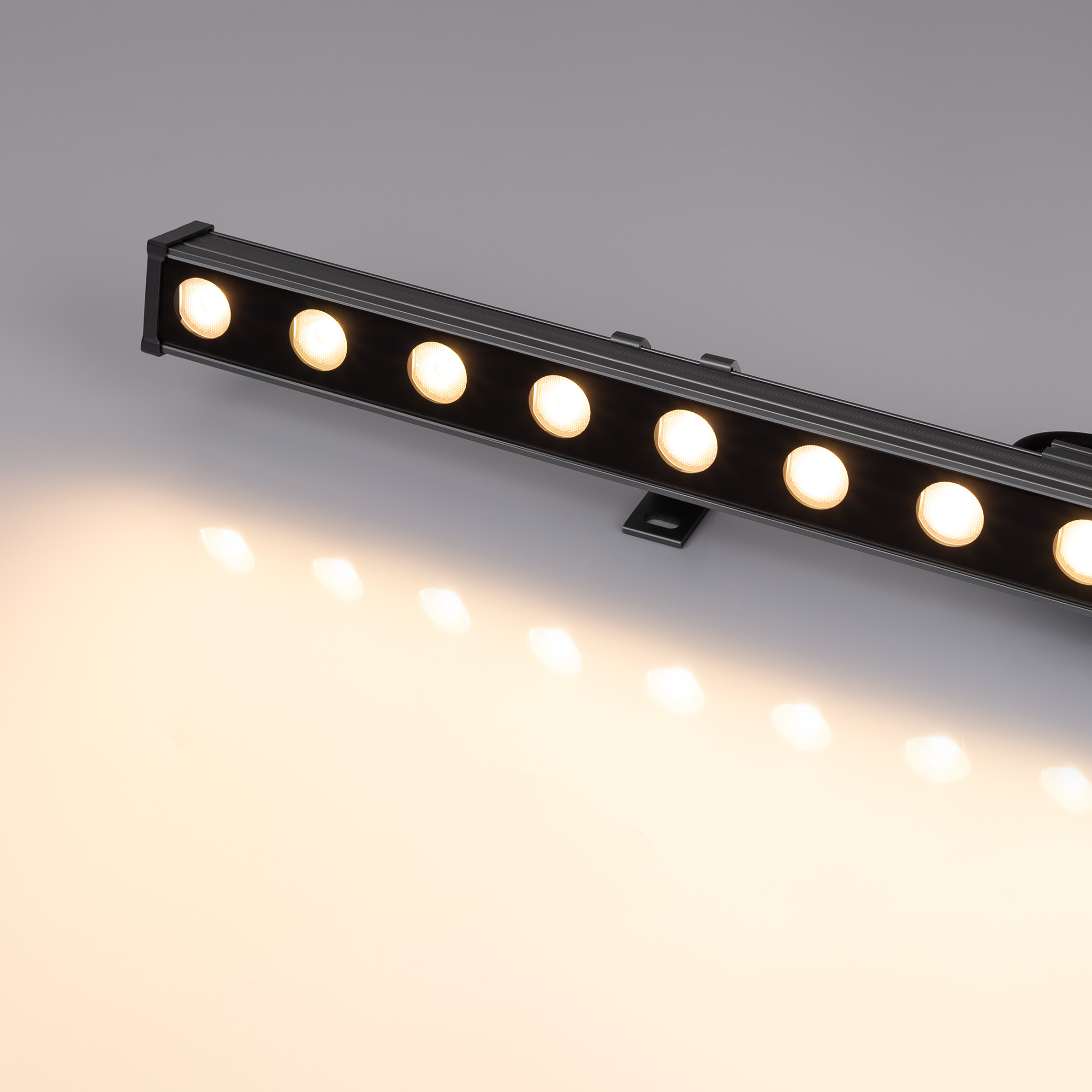 Ультратонкий линейный прожектор LINE широко используется для декоративной подсветки зданий, а также архитектурных и скульптурных объектов: памятников, мостов, арок и др. Специальная оптика, установленная в прожекторе, формирует распределение светового потока с узконаправленным углом излучения, что позволяет создать яркую и красивую иллюминацию фасадов зданий, а также сделать акценты на архитектурных формах. Применение в прожекторе SMD-светодиодов с высокой световой эффективностью 80 лм/Вт экономит значительную долю электроэнергии. Алюминиевый корпус серого цвета выполнен со степенью пылевлагозащиты IP65 для эксплуатации в помещениях или на открытом воздухе, избегая места с большим скоплением воды. Встроенный драйвер позволяет быстро подключить прожектор к сети 230 В. Герметичные разъемы упрощают подключение к кабелю питания и соединение прожекторов последовательно в группы, а два поворотных кронштейна обеспечивают надежный монтаж на поверхности.