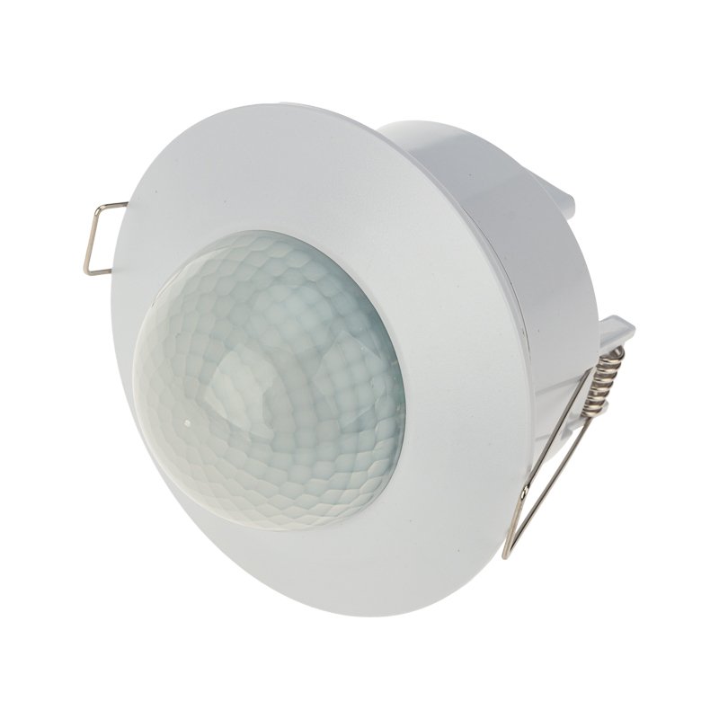 Датчик движения точечный встраивается в подвесной потолок с диаметром установочного отверстия 75 мм. Визуально датчик гармонично встраивается в обстановку и не выделяется на потолке.