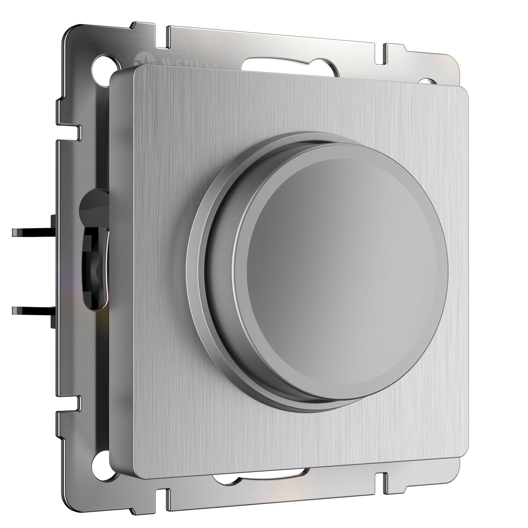 <p>Диммер предназначен для изменения уровня яркости света. Поворотная кнопка регулирует интенсивность светового потока. Включение и выключение производится нажатием на кнопку. Диммер совместим со светодиодными диммируемыми лампами и лампами накаливания.</p> <p>Диммирование происходит по методу TRIAC (симметричный триодный тиристор) и протекает по переднему фронту. Передний фронт — это начало положительного полупериода переменного напряжения. Такой метод подходит для ламп накаливания, а также некоторых диммируемых LED ламп.</p> <p>Диммер можно использовать в тандеме с проходным выключателем. Для надежной и бесперебойной работы диммера рекомендуется оставлять запас мощности ~15% (510 Вт), при максимальной мощности 600 Вт, для диммируемых светодиодных ламп ~15% (170 Вт), при максимальной мощности 200 Вт.</p> <p>Диммер подключается в разрыв цепи как обычный выключатель или по схеме проходного выключателя. Вы можете заменить обычный или проходной выключатель диммером Werkel, не перекладывая проводку.</p>