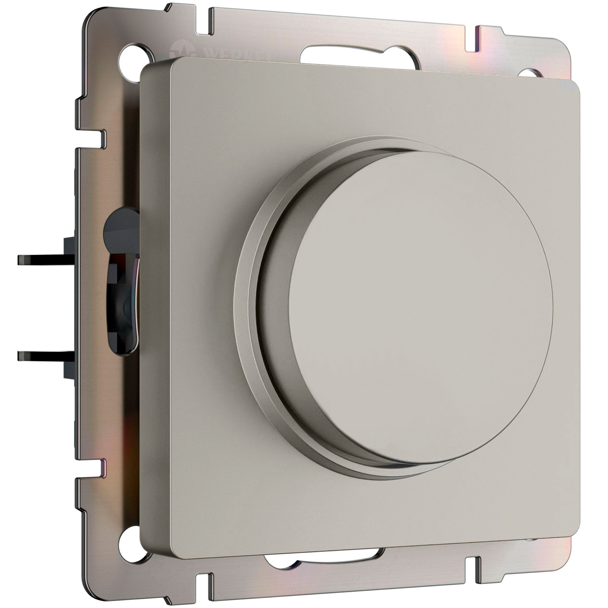 <p>Диммер предназначен для изменения уровня яркости света. Поворотная кнопка регулирует интенсивность светового потока. Включение и выключение производится нажатием на кнопку. Диммер совместим со светодиодными диммируемыми лампами и лампами накаливания.</p> <p>Диммирование происходит по методу TRIAC (симметричный триодный тиристор) и протекает по переднему фронту. Передний фронт — это начало положительного полупериода переменного напряжения. Такой метод подходит для ламп накаливания, а также некоторых диммируемых LED ламп.</p> <p>Диммер можно использовать в тандеме с проходным выключателем. Для надежной и бесперебойной работы диммера рекомендуется оставлять запас мощности ~15% (510 Вт), при максимальной мощности 600 Вт, для диммируемых светодиодных ламп ~15% (170 Вт), при максимальной мощности 200 Вт.</p> <p>Диммер подключается в разрыв цепи как обычный выключатель или по схеме проходного выключателя. Вы можете заменить обычный или проходной выключатель диммером Werkel, не перекладывая проводку.</p>