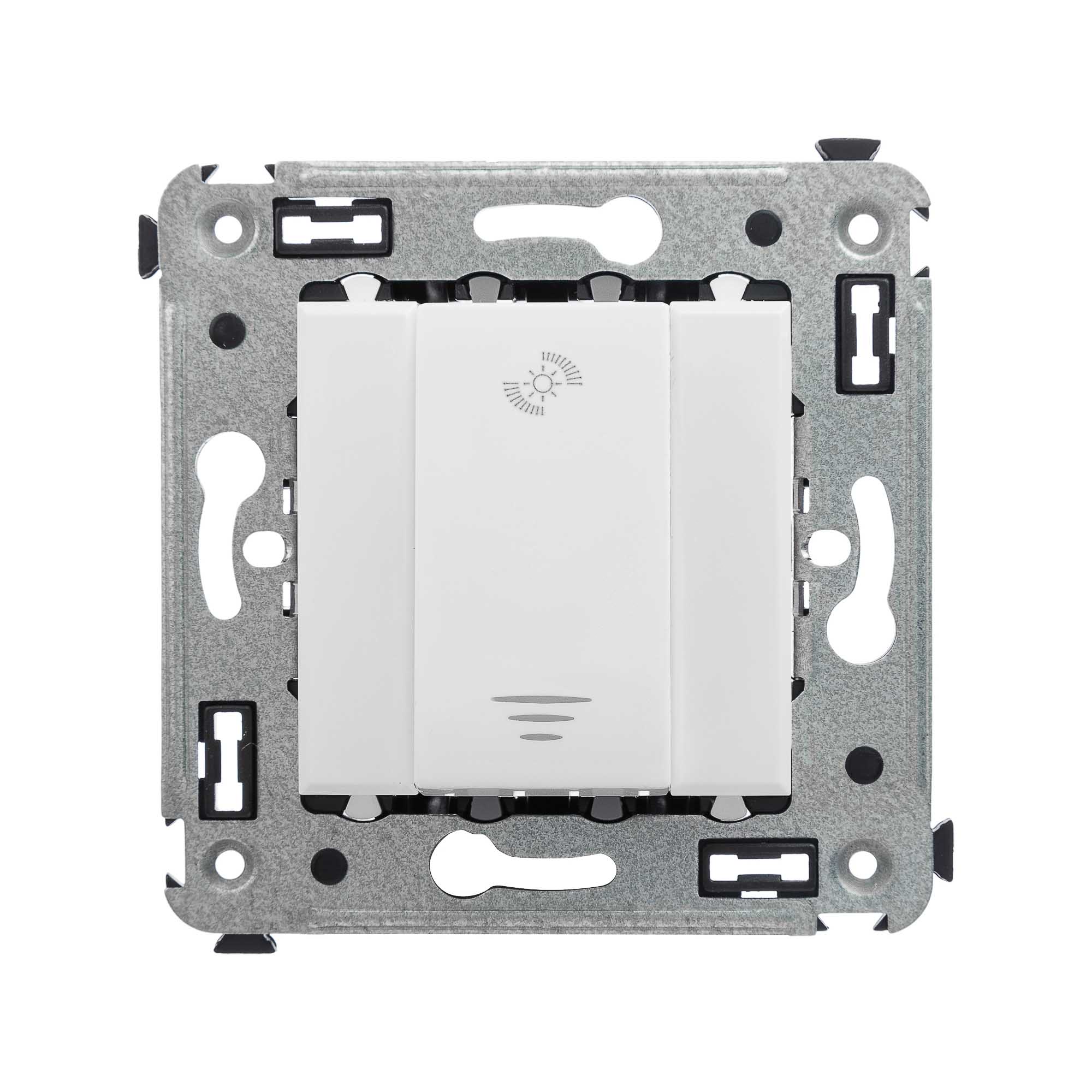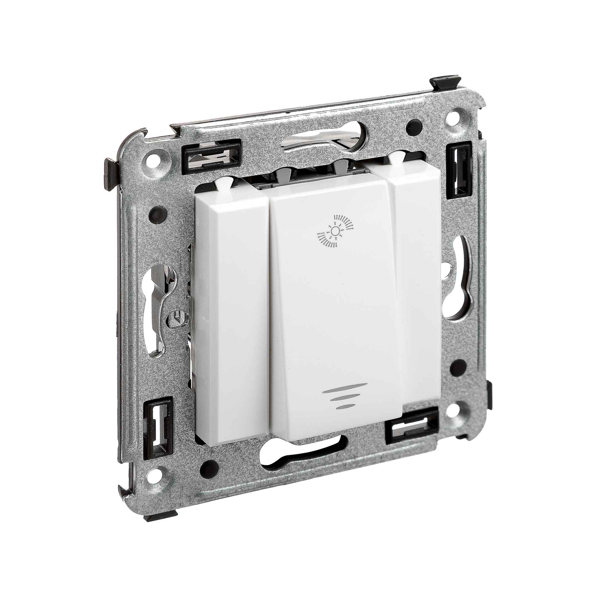 Диммеры предназначены для управления контуром освещения и регулировки интенсивности освещения помещения. Кнопочный диммер внешне схож с обычным выключателем, но с его помощью можно не только включать/выключать свет, но и менять яркость освещения. Диммеры от ДКС применяются для скрытой установки в стену. Пластиковые части электроустановочного изделия имеют оттенок "Белое облако" – светлый, спокойный оттенок, оттеняющий более насыщенные цвета, сочетающийся с интерьерами в любом стиле и любой цветовой гамме.