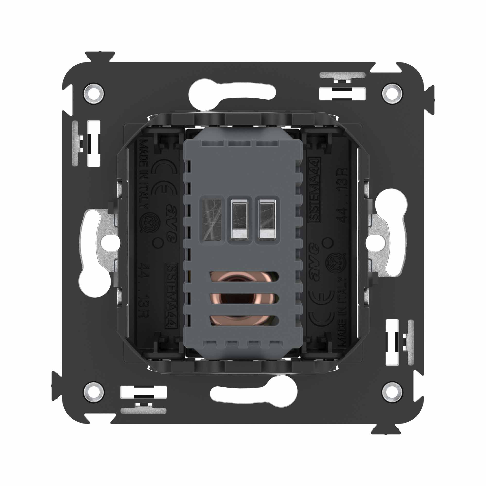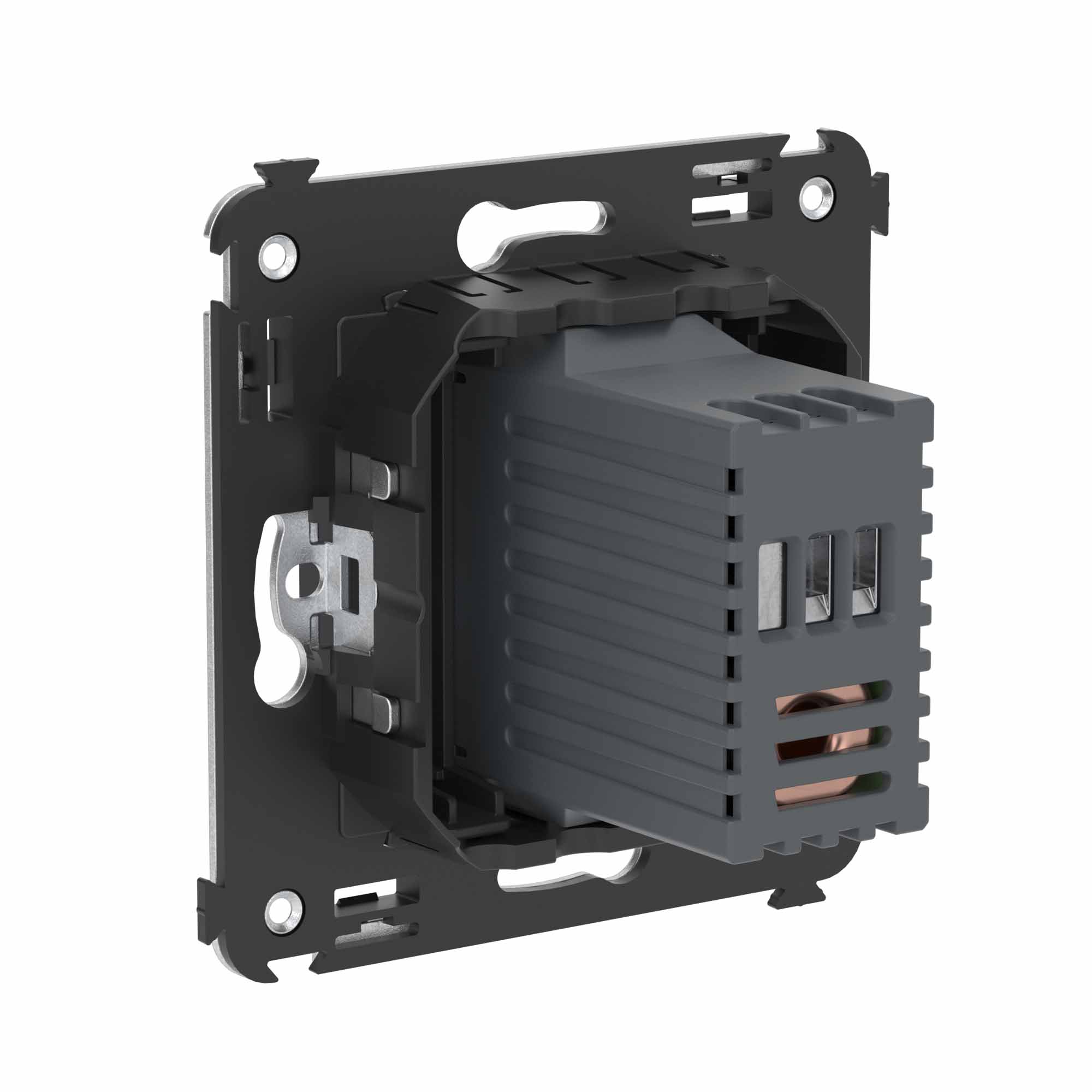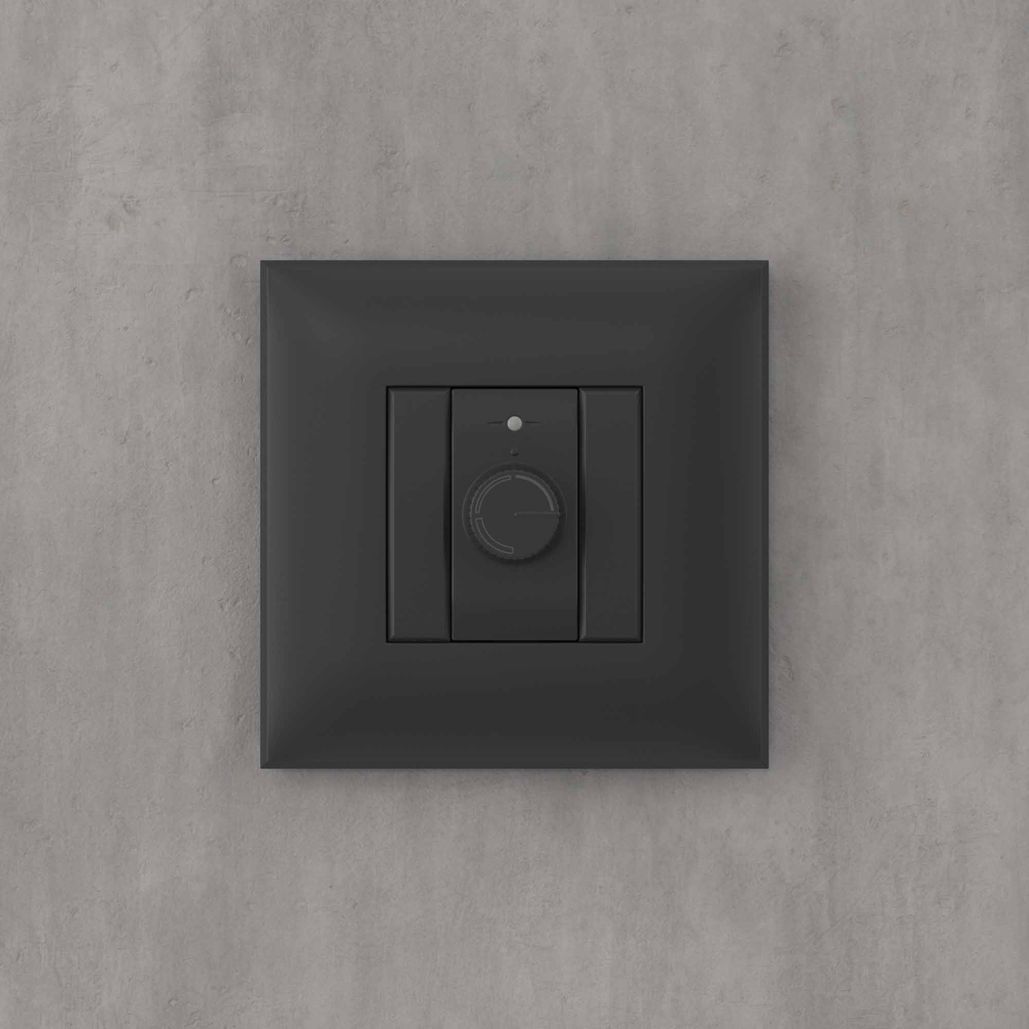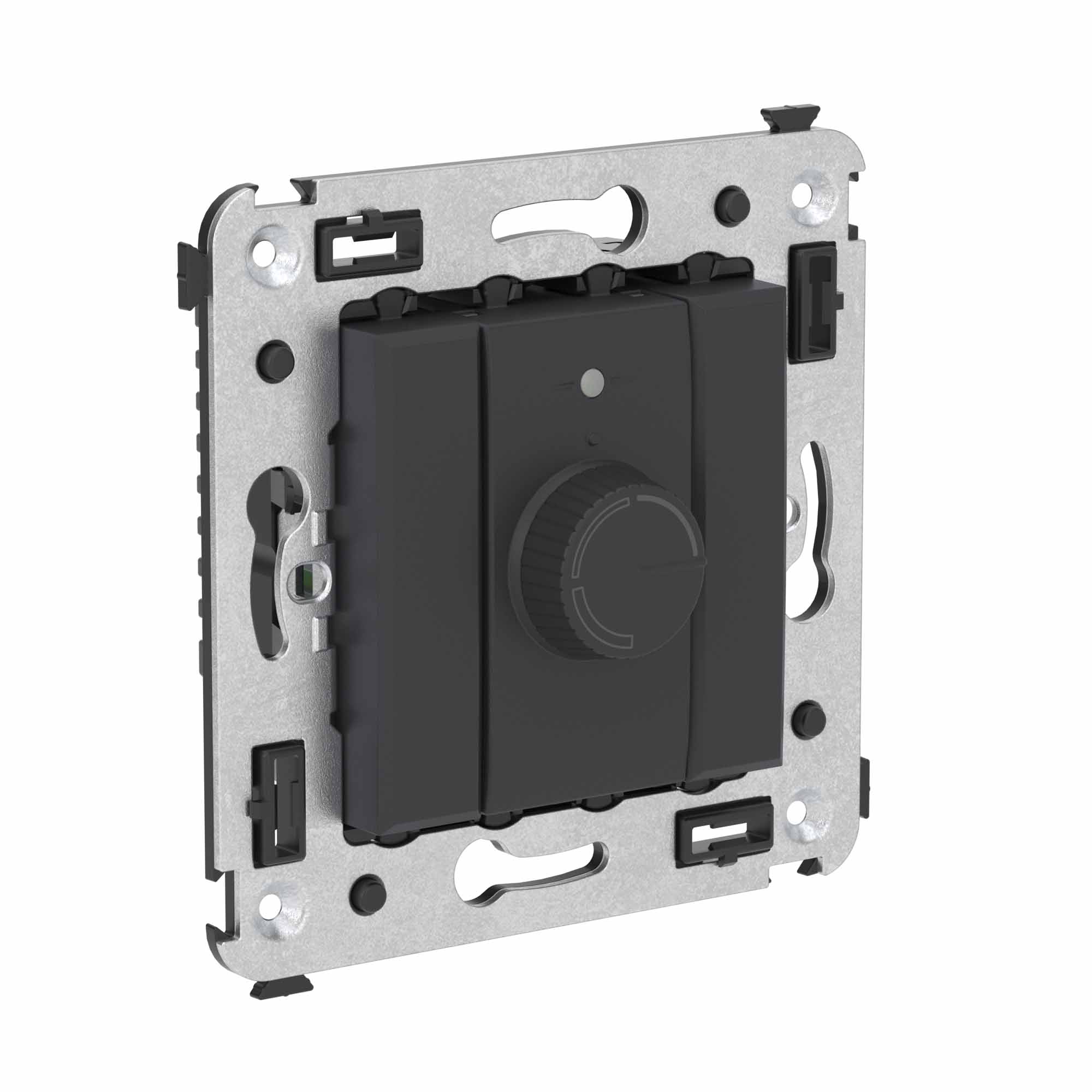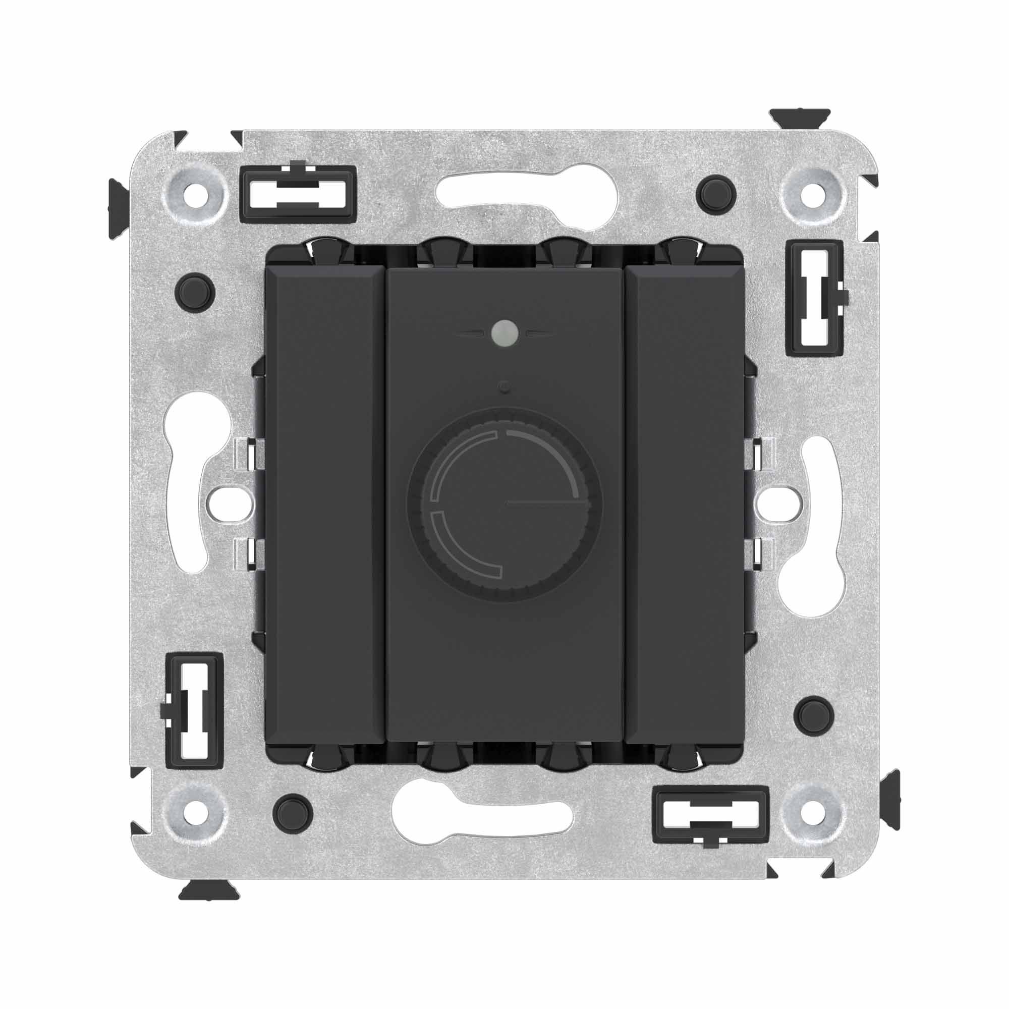 Диммер поворотный для монтажа в стену. Предназначен для монтажа в подрозеточные коробки глубиной не менее 45 мм (код 59301). Используется для управления освещением помещения. Регулирование 60–800 Вт для ламп накаливания и галогенных ламп. Диаметр отверстий для ввода кабелей – 3 мм; винтовые зажимы; шаблон для зачистки кабеля – 11 мм; встроенная подсветка. 2 модуля. Цвет: "Черный матовый".