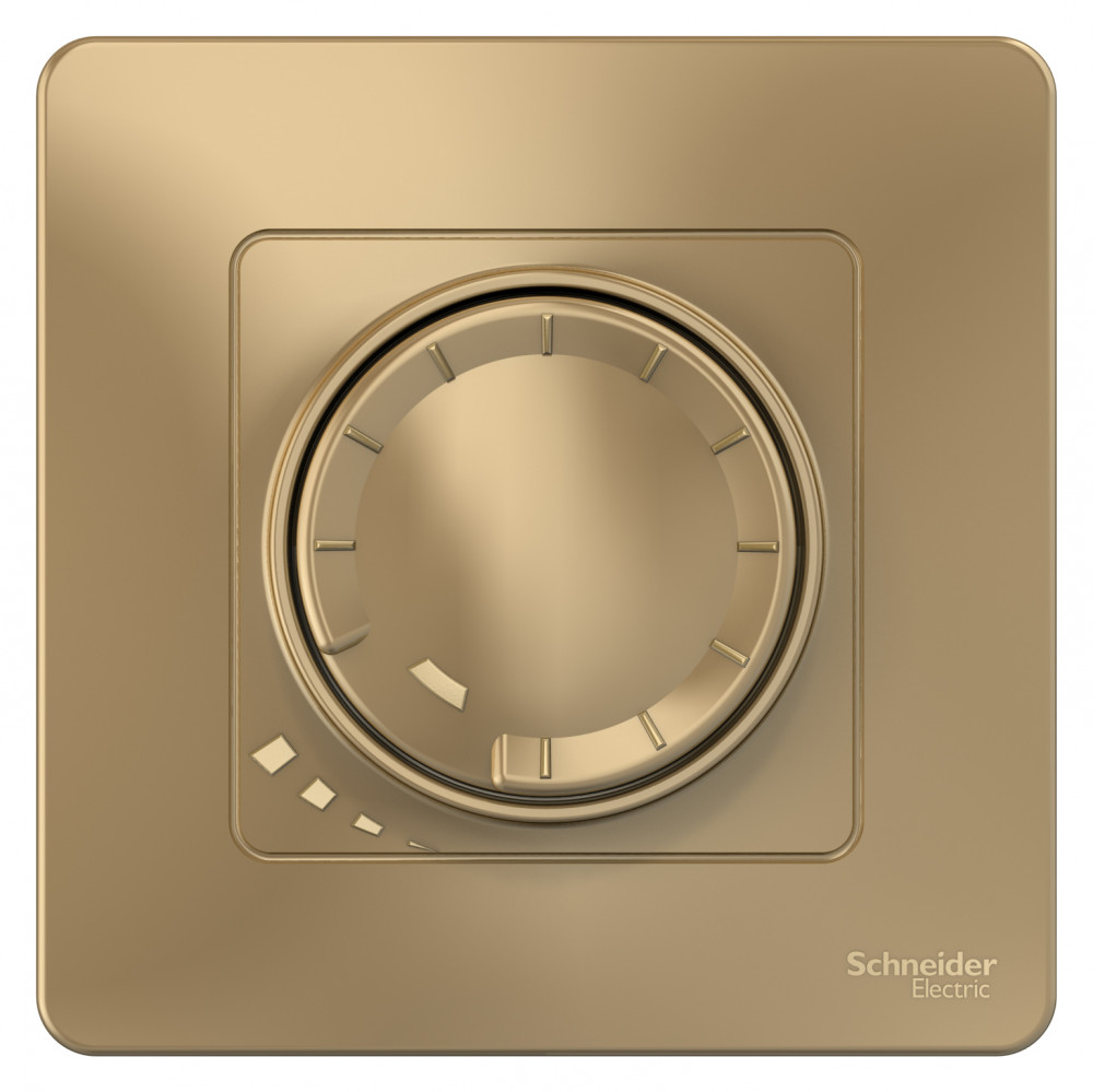 Светорегулятор (диммер) Systeme Electric (ранее Schneider Electric) BLANCA (титан, скрытой установки) поворотно-нажимной универсальный предназначен для сетей 230В, потребление 5-150Вт для светодиодных ламп и 10-400Вт для ламп накаливания и галогенных. Диммер изготовлен из ABS-пластика, прост в установке и удобен в применении.