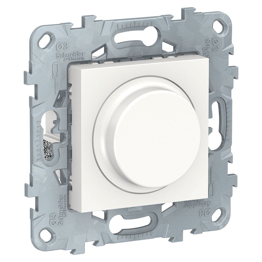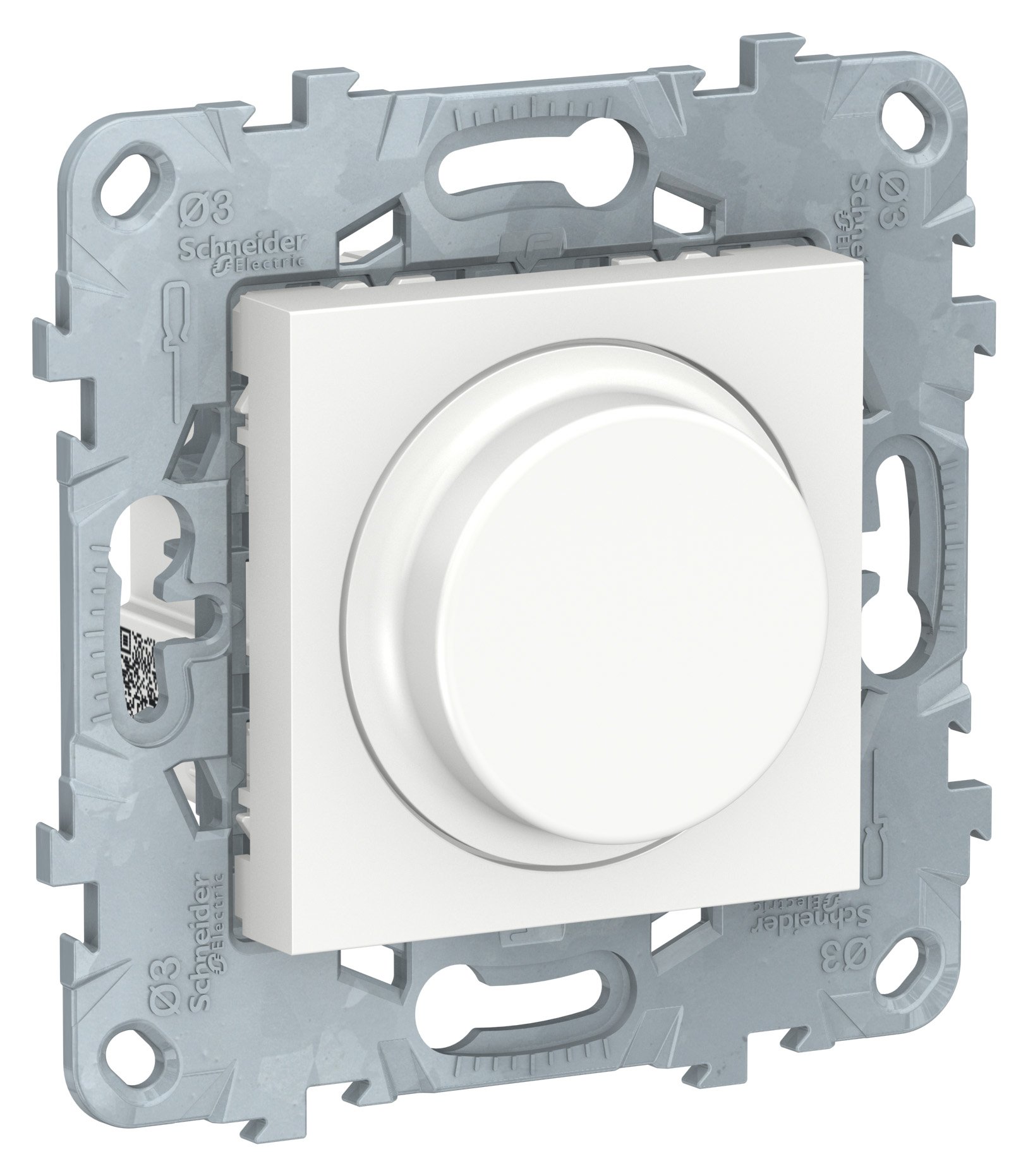 Светорегулятор Schneider Electric UNICA (белый) поворотно-нажимной универсальный с винтовыми зажимами на мощность 5-200 Вт.