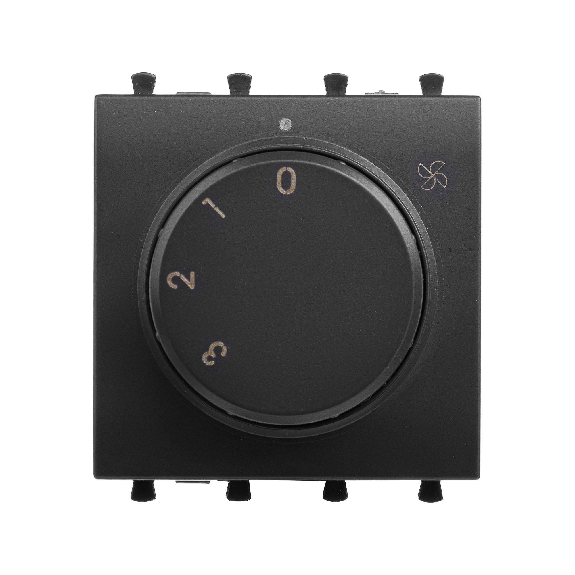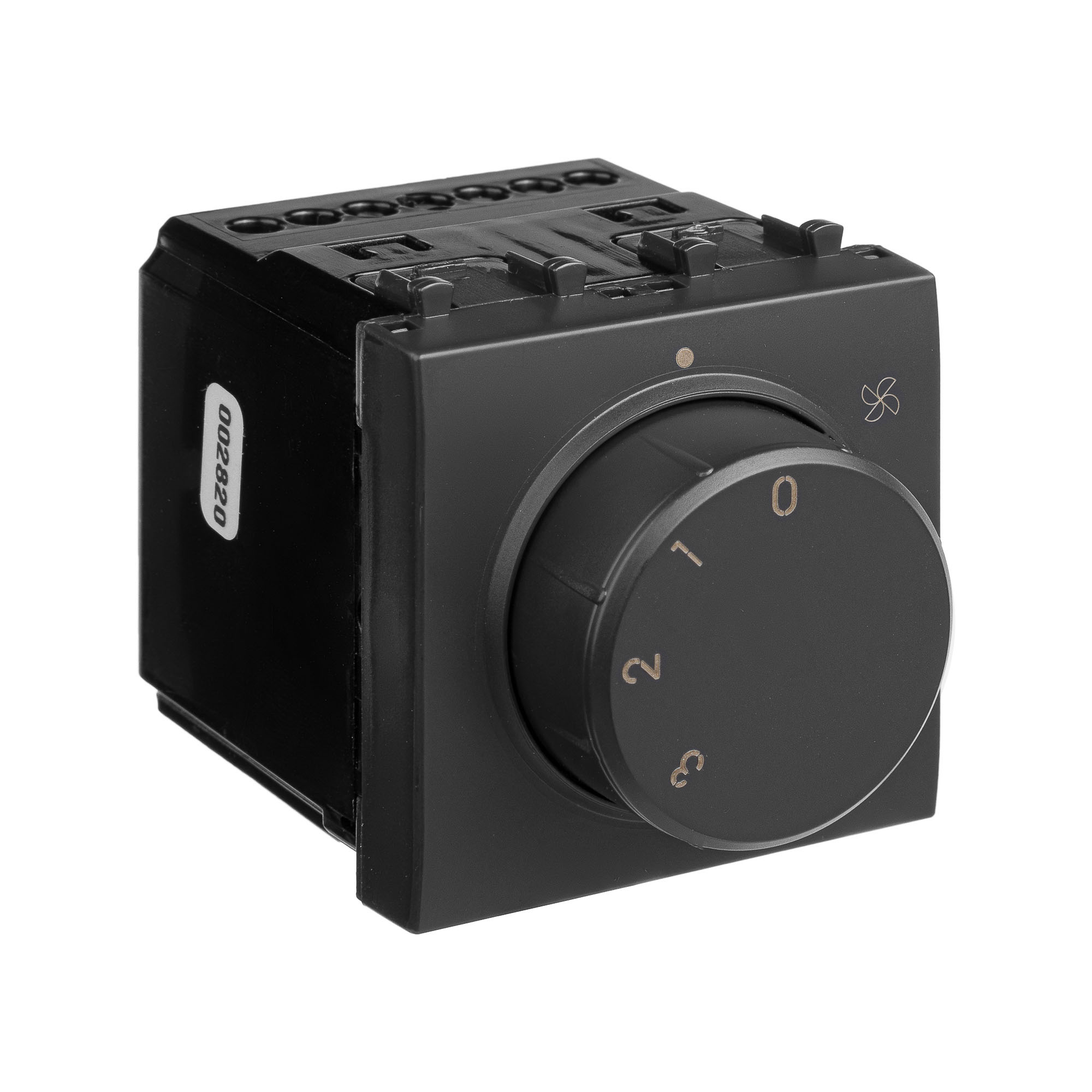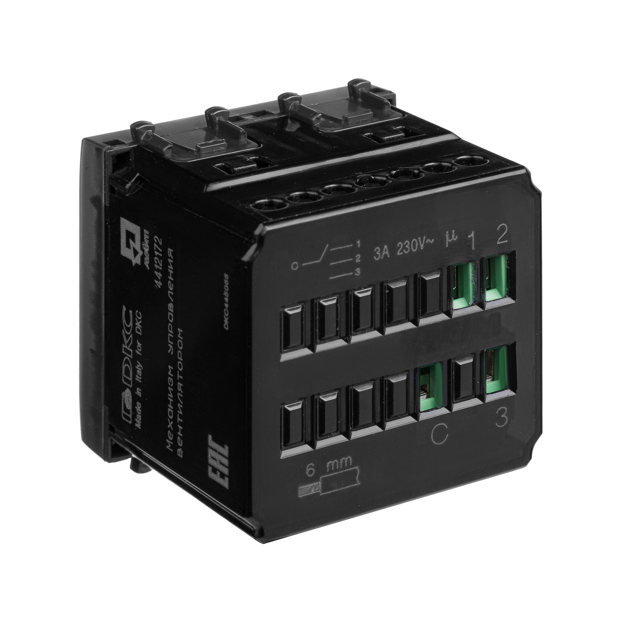 Механизм управления вентиляторами от ДКС встраивается в настенный кабель-канал и используется для изменения скорости вращения лопастей вентилятора. Конструкция предусматривает переключение по трем возможным скоростям и режим покоя. Изменение скорости производится поворотом колесика-регулятора. Номинальное напряжение ЭУИ – 230 В. Изделие имеет цвет "Черный матовый". Это оттенок с универсальной сочетаемостью, который подойдет к любому цветовому решению и стилю оформления интерьера.