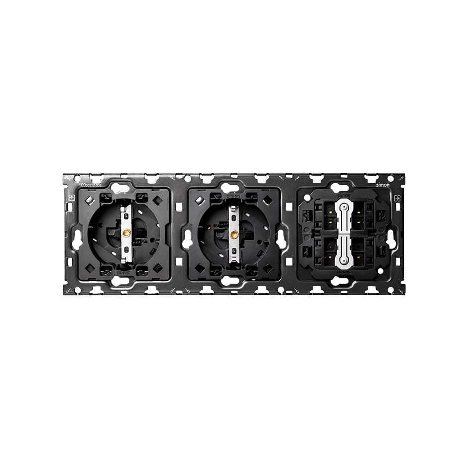Simon 100 Кит 3 поста механизм 2 розетки Schuko + 2 переключателя (проходные) + суппорт от производителя Simon. Артикул производителя 10010310-039.