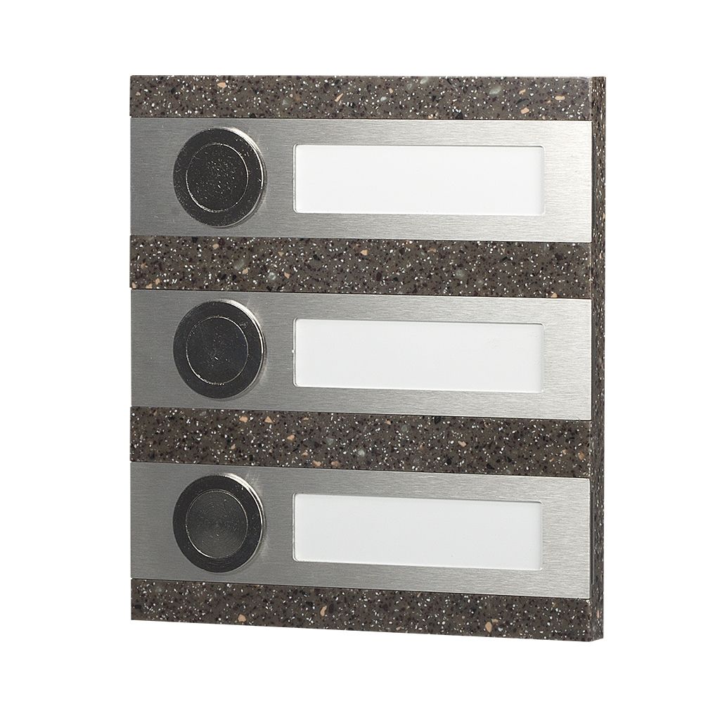 Zamel Кнопка звонка интерьерная, тройная прямоугольная, нерж. сталь/коричневый искусств. камень, 50 В от производителя Zamel. Артикул производителя PDK-250/3-BRA.