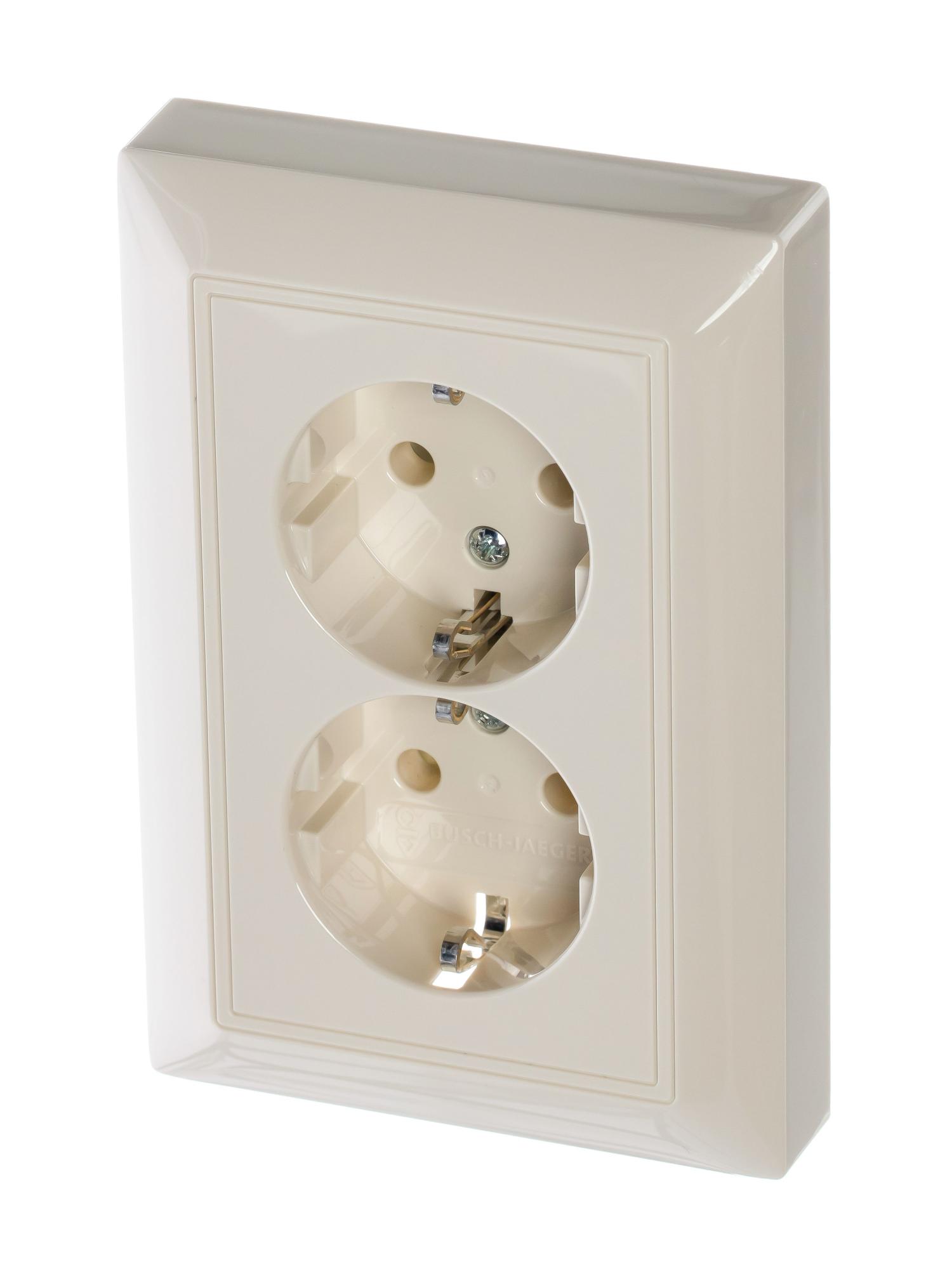 Механизм двойной розетки SCHUKO в комплекте c накладкой, не требует установки в рамку