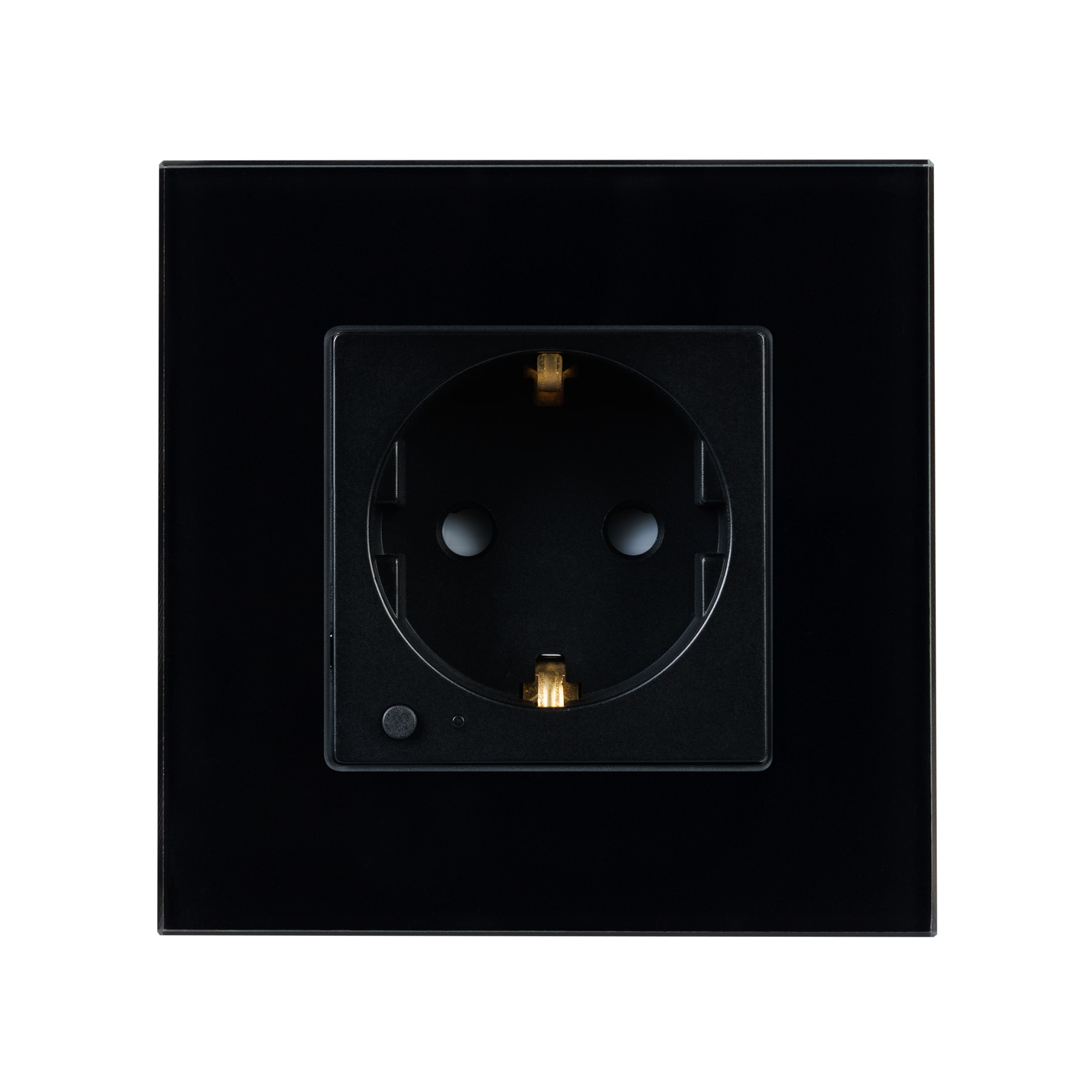 Умная розетка из серии OMALI с функцией беспроводного управления по протоколу Zigbee. Видимая часть механизма выполнена из высококачественного пластика черного цвета, с фронтальной рамкой из закалённого стекла. Контактная часть присоединяется при помощи винтовых зажимов, а усиленная алюминиевая рамка, надежно фиксирует механизм в установочном подрозетнике.
