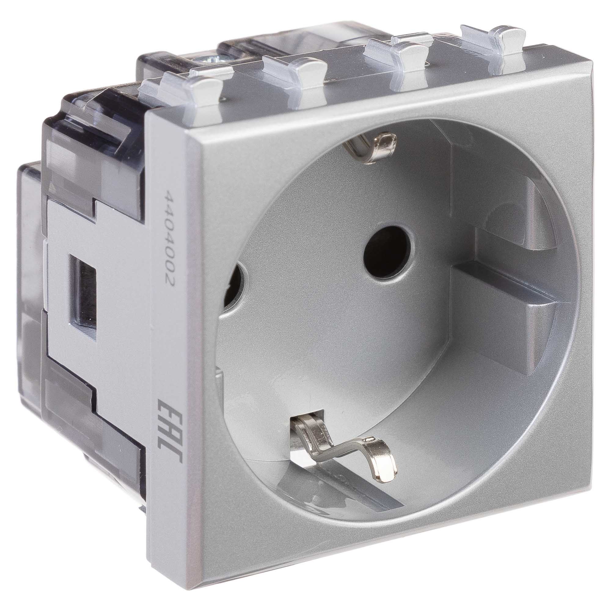 ЭУИ "Avanti" – это образец сочетания передового дизайна и высокой надежности. Их можно применять как на промышленных объектах, так и в жилых помещениях с дизайнерским ремонтом. Эта серия была вдохновлена традициями русского авангарда начала XX века. В состав системы входят: каркасы, механизмы и рамки. Модульные изделия монтируются не непосредственно в стену, а в кабель-каналы, напольные башенки или лючки. Это позволяет создавать уникальный набор приборов, который будет соответствовать потребностям потребителя. Розетка модульная с защитной шторкой типа 2P+E может устанавливаться в системы "In-liner Aero" и "In-liner Front" и применяется для подключения бытовых приборов или оргтехники. Занимает два модуля. Номинальное напряжение - 230 В, номинальный ток - 16 А. Пластиковые части изделия имеют цвет "Закаленная сталь". Это строгий и стильный серебристый оттенок, идеально сочетающийся с холодными тонами и стилем high-tech.
