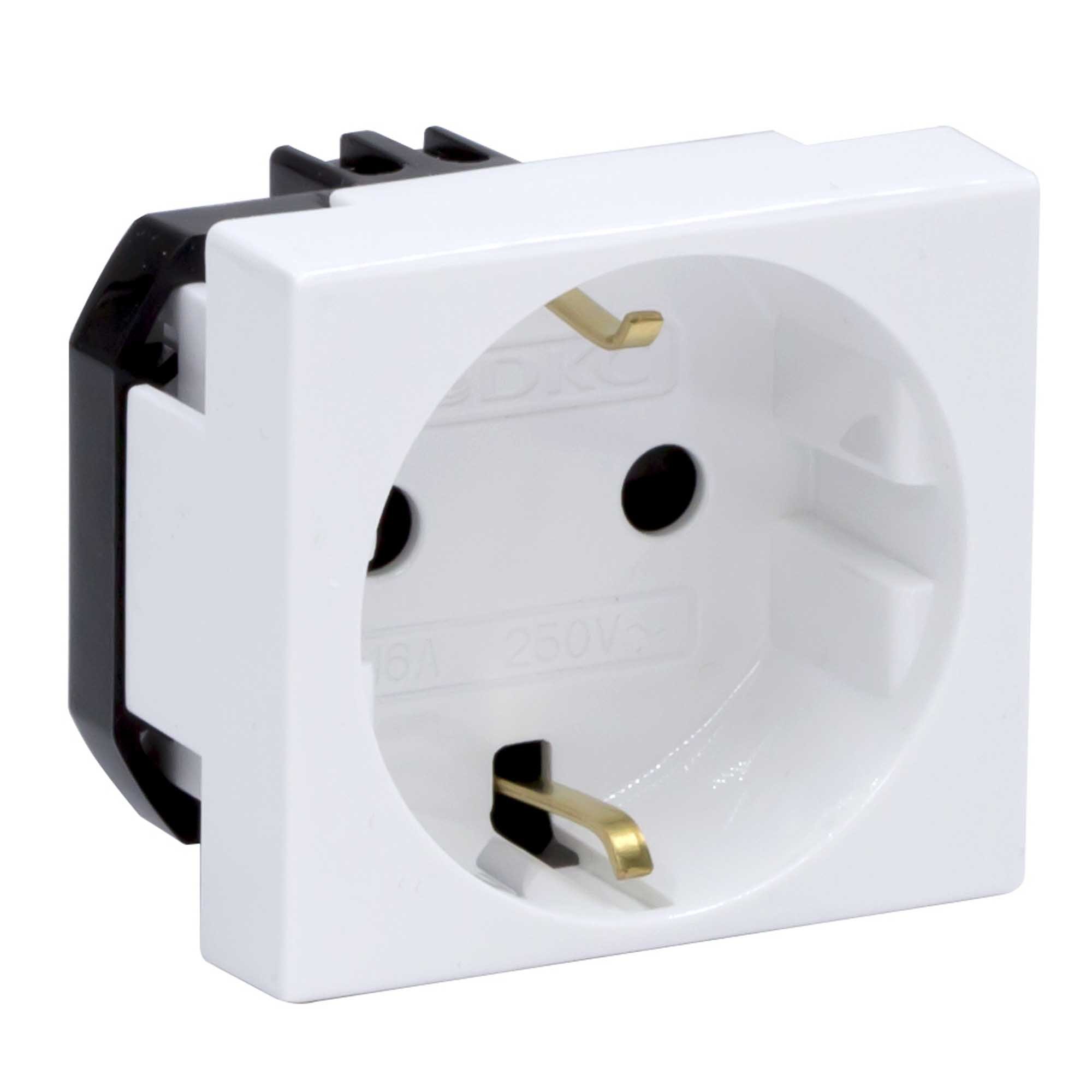 Электроустановочные изделия серии Viva считаются профессиональными их можно устанавливать в кабельные короба и башенки. Чаще всего система Viva применяется в коммерческой недвижимости. Боковое подключение изделий к электропитанию позволяет экономить пространство при установке в кабель-канал. Специальный суппорт дает возможность закреплять изделия на DIN-рейке. Силовые розетки серии отличаются высокой надежностью и функциональностью. Розетка 2Р+Е имеет шторки, предотвращающие попадание внутрь механизма пыли и сора. Номинальное напряжение 220-250 В, степень пыле- и влагозащиты IP20. Размеры: ширина 50 мм, высота 45 мм, глубина 39,3 мм. Цвет белый.
