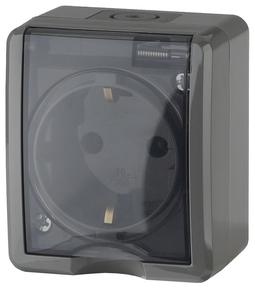 Розетка IP54 серии Эра Эксперт открытой установки цвет серый 11-2401-03. Номинальные характеристики 16А 250В . Устройство выполнено из качественного поликарбоната, оснащёно уникальными винтовыми клеммами ЭКСПЕРТ для максимально качественного зажима кабеля в механизме.
