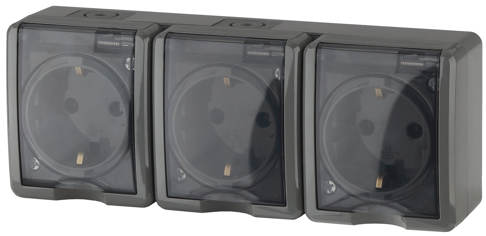 Розетка тройная IP54 3-я серии Эра Эксперт открытой установки цвет серый 11-2405-03. Номинальные характеристики 16А 250В . Устройство выполнено из качественного поликарбоната, оснащёно уникальными винтовыми клеммами ЭКСПЕРТ для максимально качественного зажима кабеля в механизме.
