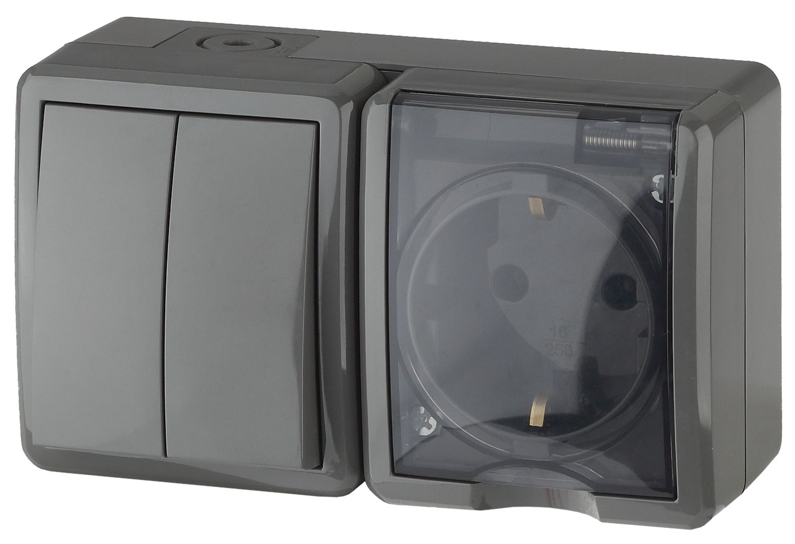 Блок розетка с выключателем влагозащищённый IP54 серии Эра Эксперт открытой установки цвет серый 11-7402-03. Номинальные характеристики 16А 250В . Устройство выполнено из качественного поликарбоната, оснащёно уникальными винтовыми клеммами ЭКСПЕРТ для максимально качественного зажима кабеля в механизме.