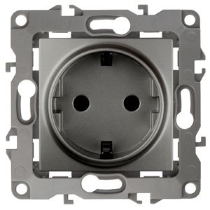 Розетка 2P+E Schuko, 16АХ-250В, без м.лапок, Эра12, графит