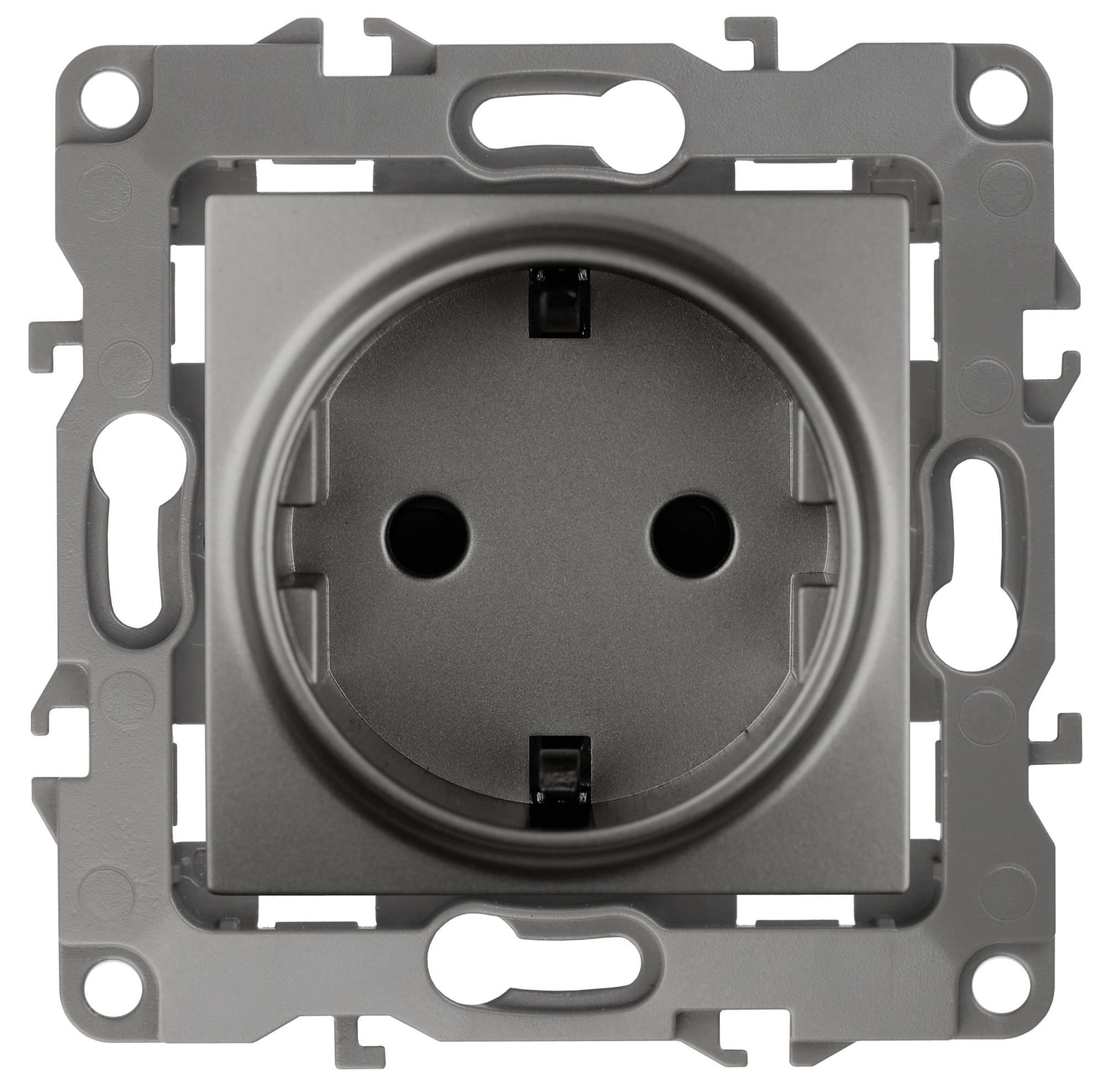 Розетка с заземлением серии Эра 12 скрытой установки механизм цвет графит 12-2101-12. Номинальные хар-ки 16А 250В . Сделана из поликарбоната, оснащёна автоматическими клеммами для бысторй и надёжной фиксации жил кабеля в мех аниме. Парные клеммы обеспечивают соединение шлейфом. Монтаж в подрозетник производится и на лапки, и на винты. Рамки приобретаются отдельно. Рамки Эра 12: 1 пост 12-5001-хх, 2 поста 12-5002-хх, 3 поста 12-5003-хх, 4 поста 12-5004-хх, 5 постов 12-5005-хх. Рамки Эра 12 Сатин: 1 пост 12-5101-хх, 2 поста 12-5102-хх, 3 поста 12-5103-хх, 4 поста 12-5104-хх, 5 постов - 12-5105-хх (хх - код цвета: 01-белый, 02-слоновая кость, 03-алюминий, 04-шампань, 05-антрацит, 06-чёрный, 07-ольха(белёный дуб-сатин), 08-вишня, 09-дуб, 10-венге, 11-сосна, 21-жёлтый, 22-оранжевый, 23-красный, 24-охра, 25-бордо, 26-лайм, 27-зелёный, 28-голубой, 29-синий).