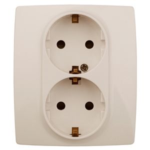 Розетка 2X2P+E Schuko со шторками, 16АХ-250В, Эра12, слоновая кость