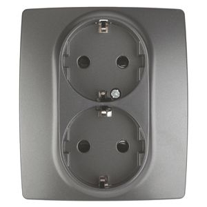 Розетка 2X2P+E Schuko со шторками, 16АХ-250В, Эра12, графит