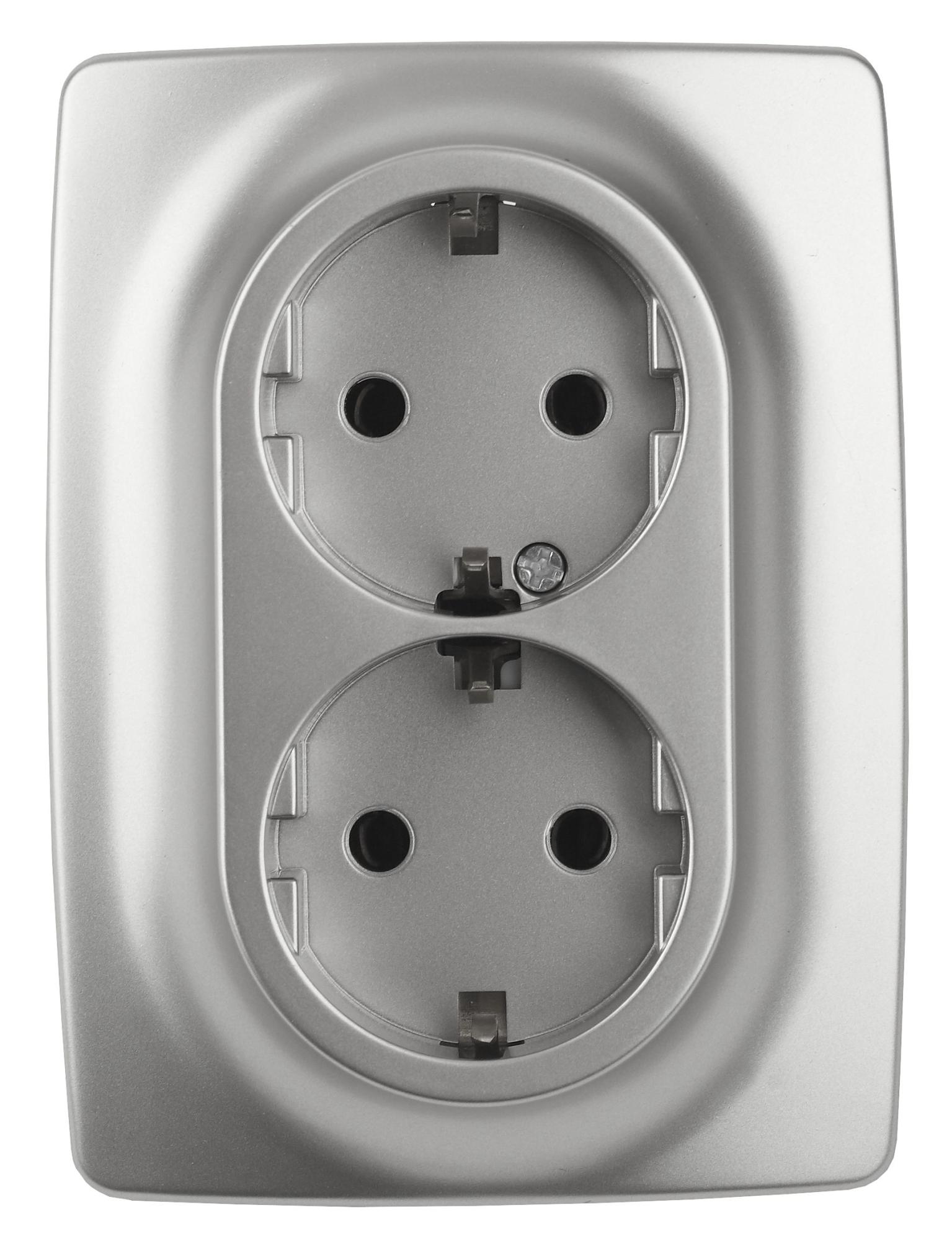 Розетка двойная с заземлением со шторками серии Эра 12 скрытой установки цвет алюминий 12-2108-03. Номинальные хар-ки 16А 250В . Сделана из поликарбоната, оснащёна автоматическими клеммами для быстрй и надёжной фиксации жил кабеля в механиме. Парные клеммы обеспечивают соединение шлейфом. Монтаж в подрозетник производится и на лапки, и на винты. Рамки приобретаются отдельно. Рамки Эра 12: 1 пост 12-5001-хх, 2 поста 12-5002-хх, 3 поста 12-5003-хх, 4 поста 12-5004-хх, 5 постов 12-5005-хх. Рамки Эра 12 Сатин: 1 пост 12-5101-хх, 2 поста 12-5102-хх, 3 поста 12-5103-хх, 4 поста 12-5104-хх, 5 постов - 12-5105-хх (хх - код цвета: 01-белый, 02-слоновая кость, 03-алюминий, 04-шампань, 05-антрацит, 06-чёрный, 07-ольха(белёный дуб-сатин), 08-вишня, 09-дуб, 10-венге, 11-сосна, 21-жёлтый, 22-оранжевый, 23-красный, 24-охра, 25-бордо, 26-лайм, 27-зелёный, 28-голубой, 29-синий).