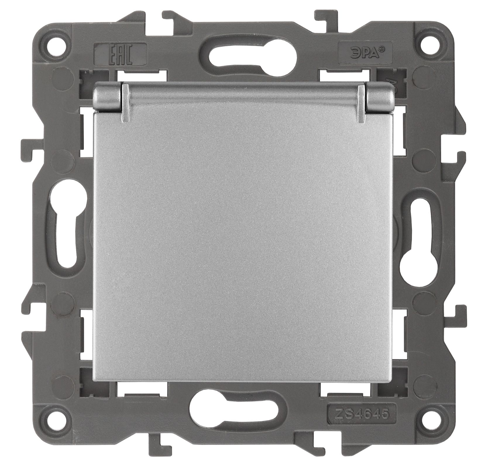 Розетка 2P+E Schuko со шторками с крышкой, 16А-250В, Эра Elegance, алюминий