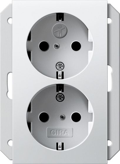 Двойная роз с зазем ЗД, 1,5 местн. роз. System 55 белый матовый