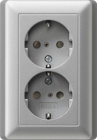 Двойная роз с зазем с защитой от детей System 55 Цвет алюминий
