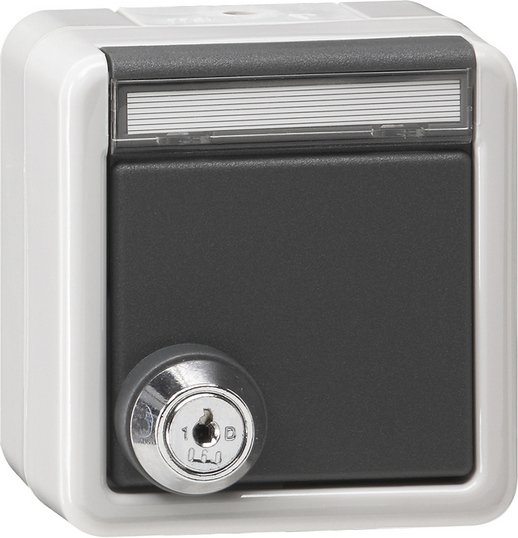 Розет с зазем конт замок с серийн ключ Накл. водоз. монт. серый