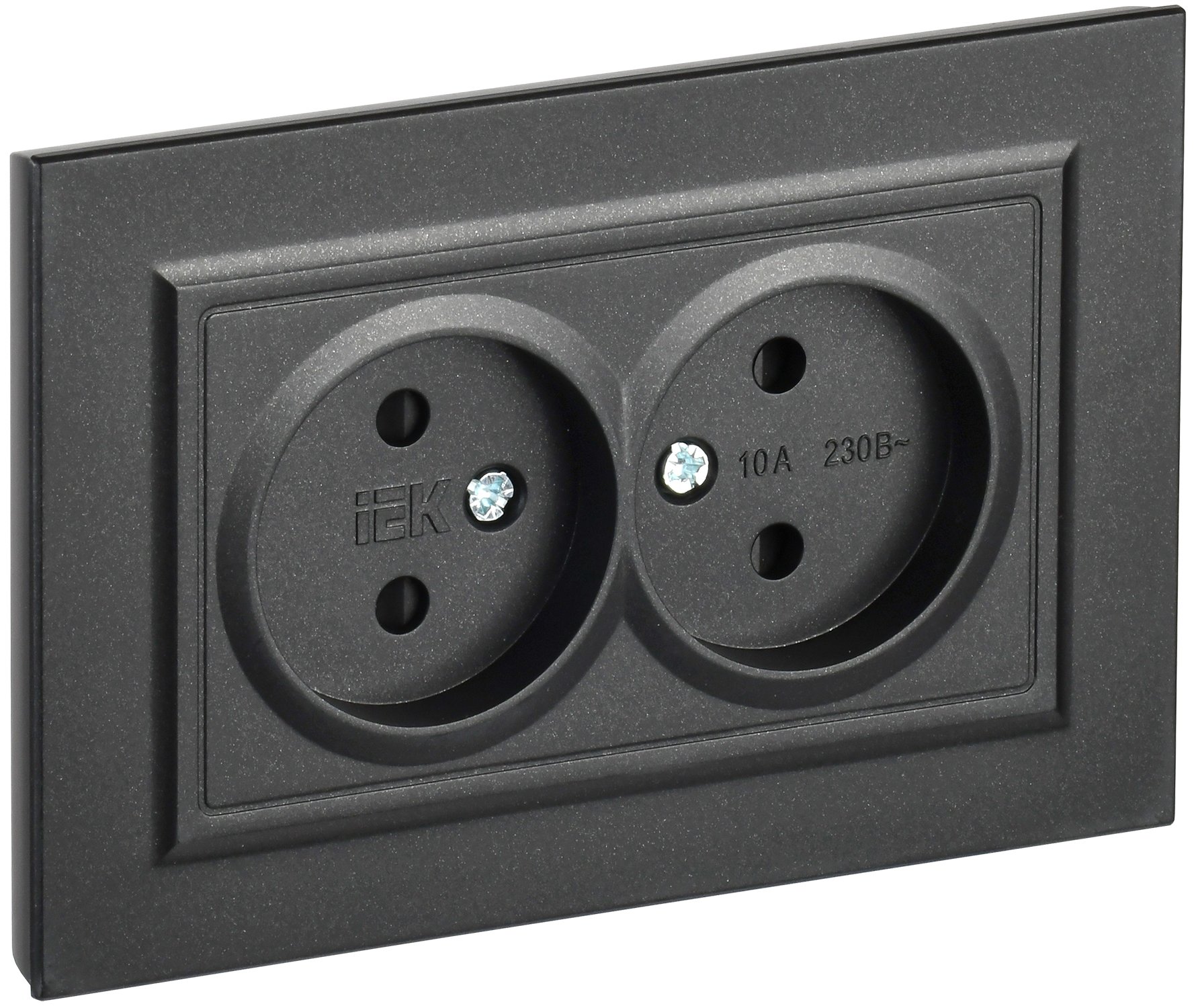 —IEK BRITE Черный Розетка 2-я без з/к с з/ш 10А в сборе РСш12-2-БрЧ, арт BR-R23-10-K02-F