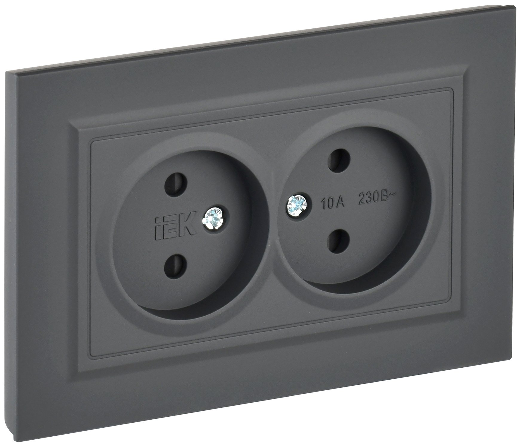 —IEK BRITE Графит Розетка 2-я без з/к с з/ш 10А в сб. РСш12-2-БрГ, арт BR-R23-10-K53-F