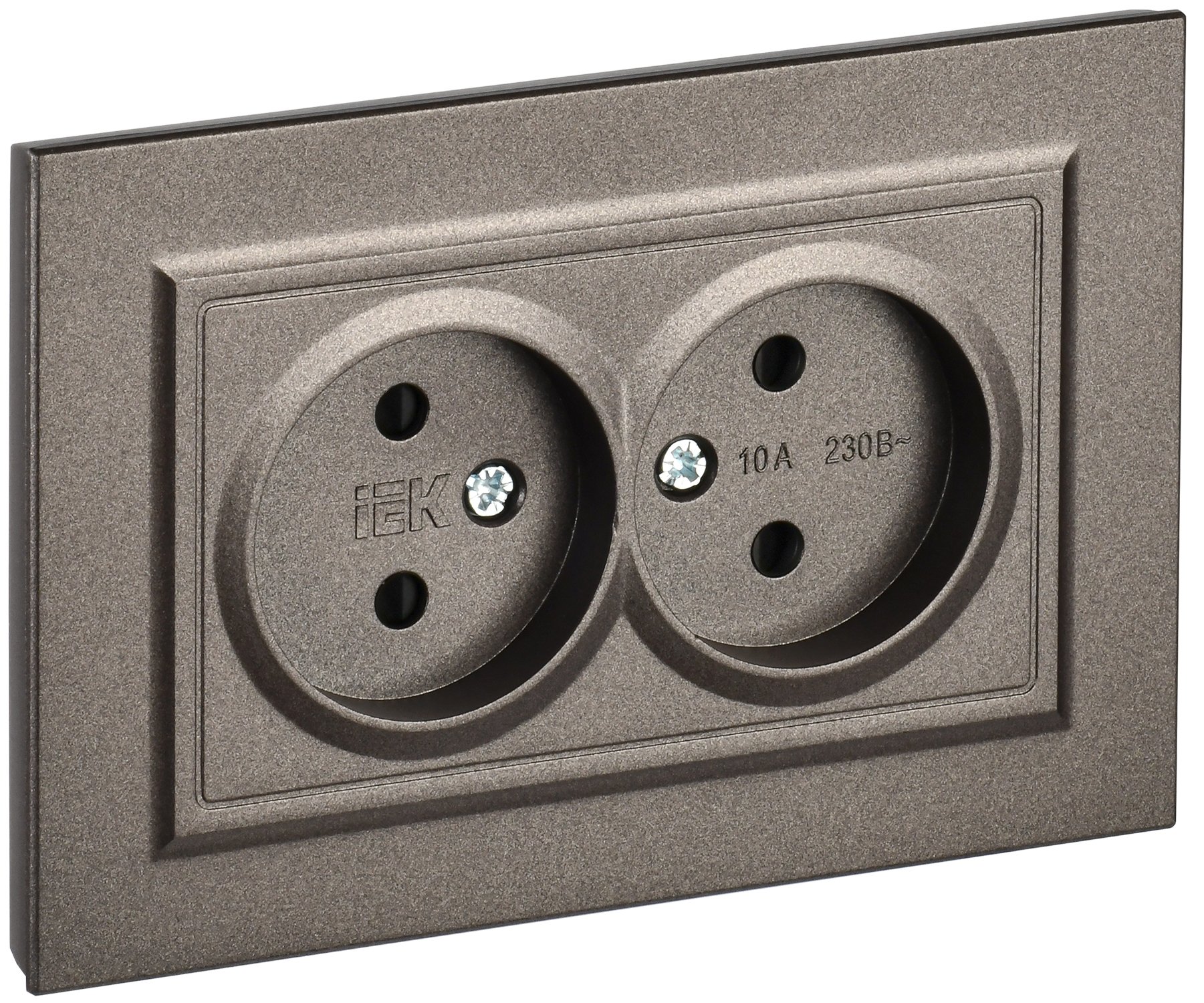 IEK BRITE Темн.бронза Розетка 2-я без з/к с з/ш 10А в сборе РСш12-2-БрТБ, арт BR-R23-10-K45-F