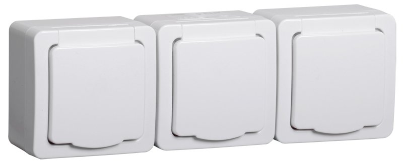 IEK GERMES PLUS Бел Розетка 3-мест. 6мод. в сборе с корпусом с З/К откр. уст-ки16А 220-250В с крышкой винт. зажим IP54, арт ERMP32-K01-16-54-EC