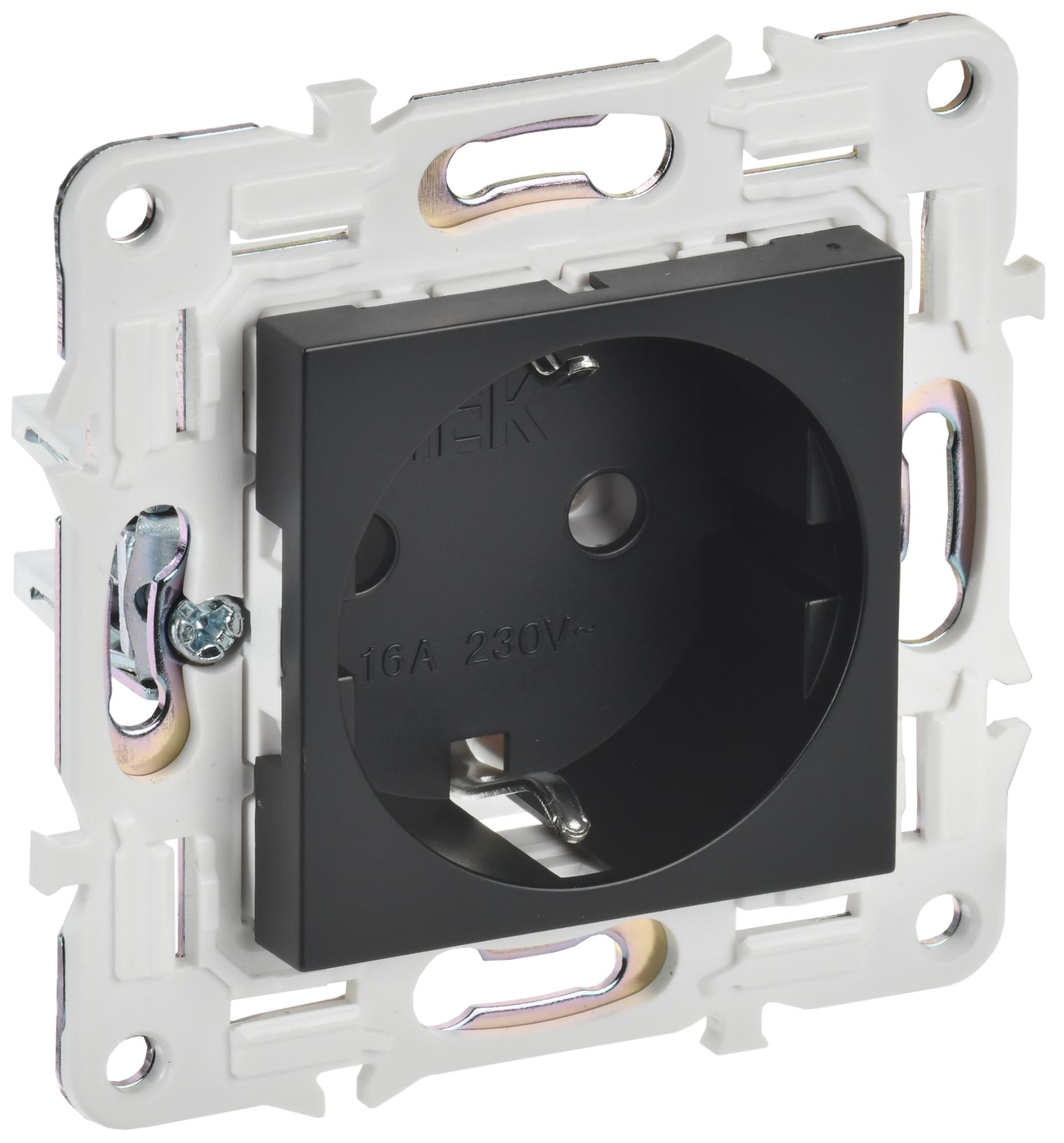 IEK SKANDY Черный Розетка с/з без защитных шторок 16А SK-R05Bl, арт SK-R11-16-K02
