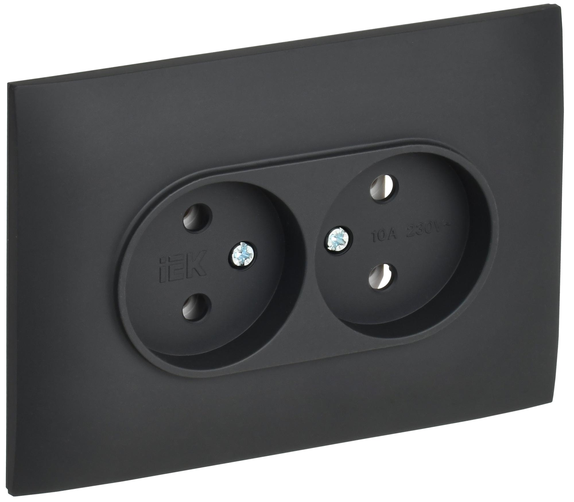 IEK SKANDY Графит Розетка 2-ая б/з 10А в сборе SK-R10G, арт SK-R20-10-K53-F