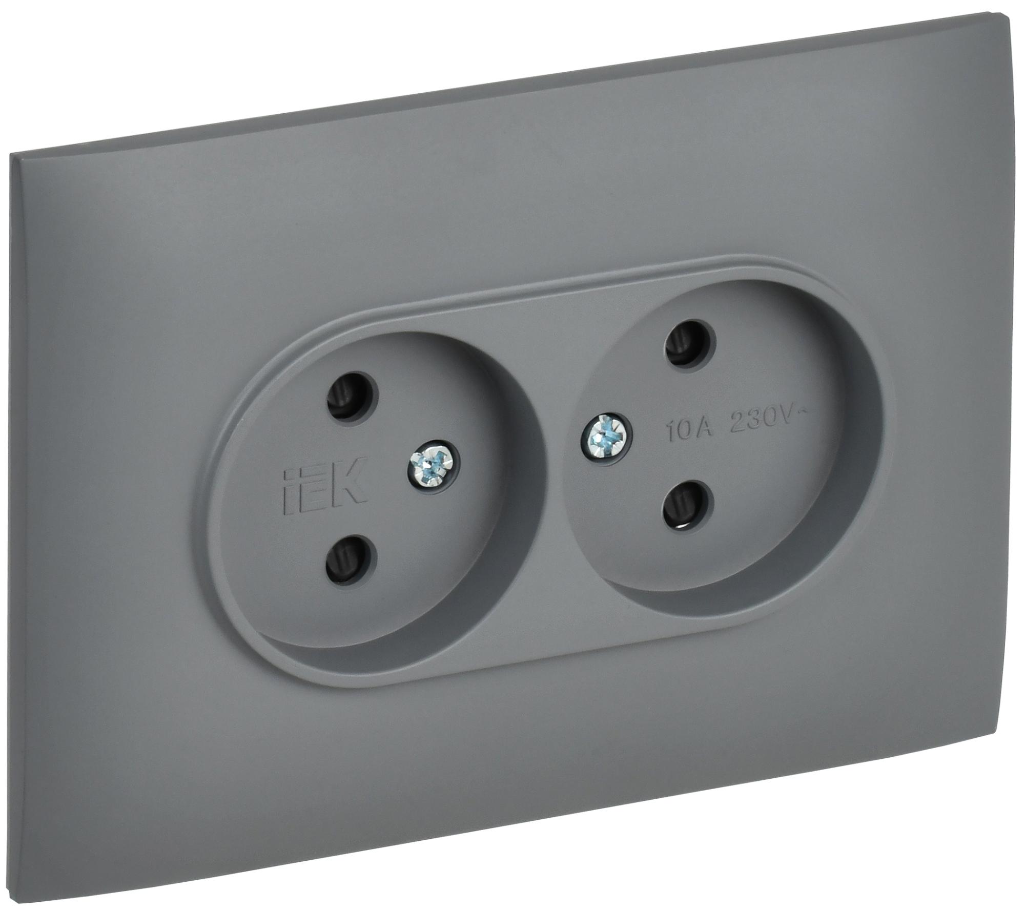 —IEK SKANDY Серый Розетка 2-ая б/з с защитными шторками 10А в сборе SK-R09Gr, арт SK-R23-10-K03-F
