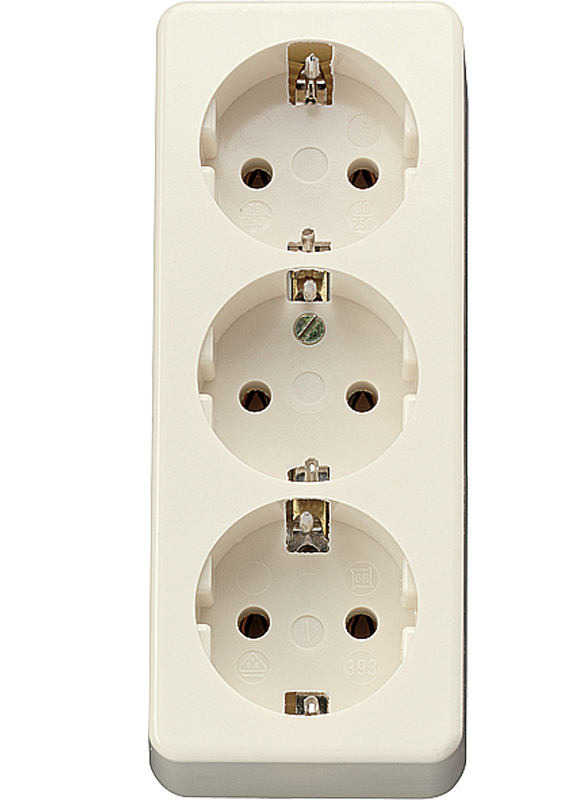 JUNG Штепсельная розетка SCHUKO 16А / 250В, тройная накладного монтажа, с монтажной платой слоновая кость AP600 от производителя JUNG. Артикул производителя 10S23L.