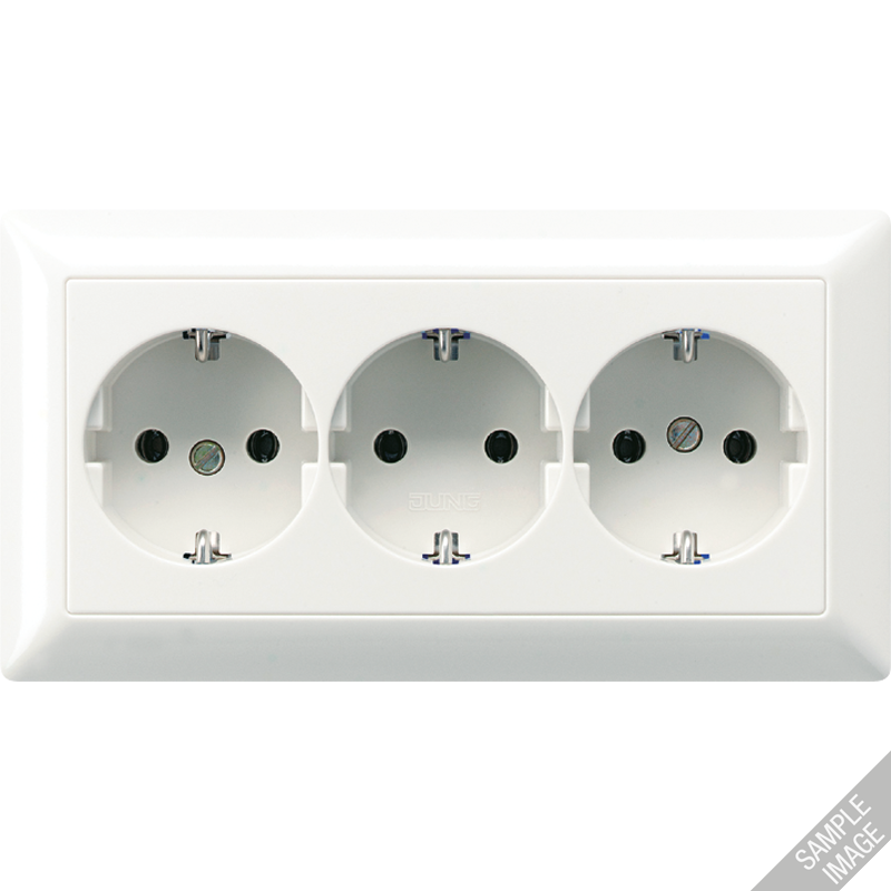 JUNG Штепсельная розетка SCHUKO 16A 250V~ тройная, полная плата слоновая кость от производителя JUNG. Артикул производителя AS523.