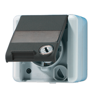 JUNG Штепсельная розетка SCHUKO с замочным механизмом для накладного монтажа IP44 от производителя JUNG. Артикул производителя 820NAWSL.