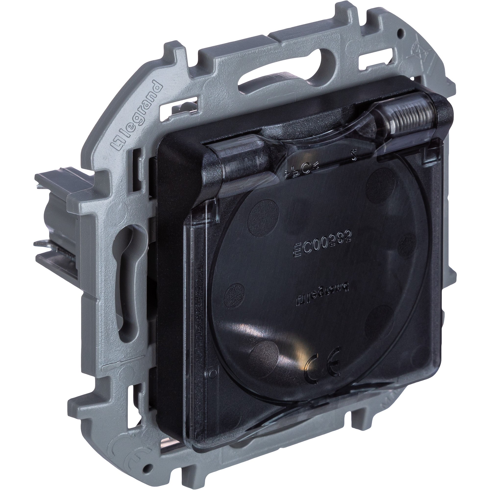 Розетка с заземлением, защитной крышкой и интегрированными защитными шторками Legrand Inspiria для скрытого монтажа , степень пылевлагозащиты IP44, цвет "Антрацит". Максимальный ток 16 А, напряжение ~250В, максимальная мощность 3680 Вт. Применяется для электропитания в зданиях с проводкой с заземлением (с защитным проводником). Предназначена для установки в местах с повышенной влажностью. Оснащена интегрированными шторками, которые защищают детей и других пользователей от удара электрическим током. Особенности изделия: - Контактная группа изготовлена из высококачественной латуни CuZn37, имеет высокую степень упругости и сохраняет плотный контакт с вилкой, при длительной эксплуатации. - Зажимы для присоединения проводников винтовые П-образной формы для исключения бокового выдавливания провода. - В зажимах установлены качественные винты с никель-цинковым напылением для надежного резьбового соединения даже при чрезмерных моментах затяжки. - Защитный контакт с широким основанием и специальным профилем для упгугос