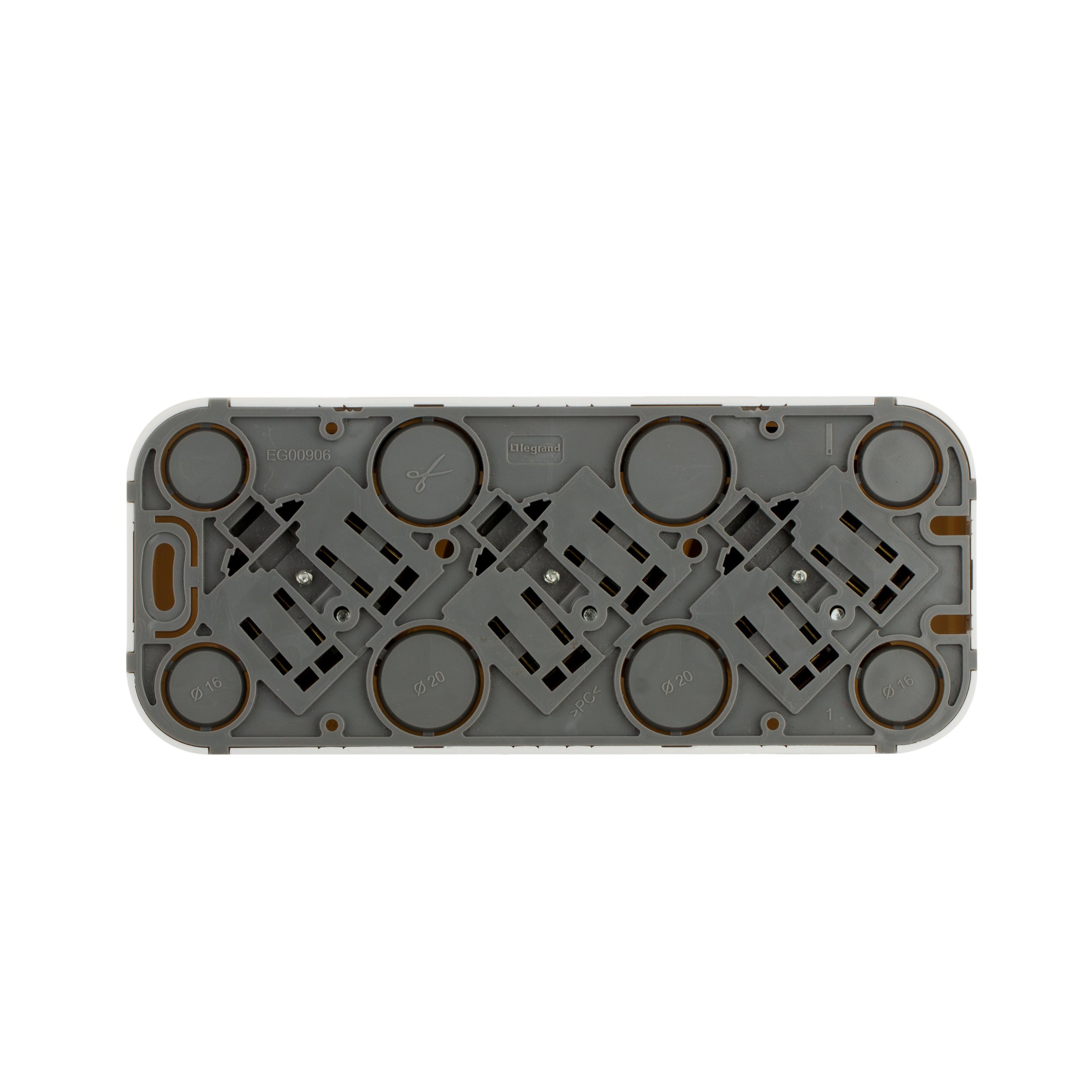 Тройная розетка с заземлением, со шторками Legrand Quteo, цвет белый, для открытого монтажа. Максимальный ток 16 А, максимальная мощность 3680 Вт. Применяется в зданиях, оборудованных для повышения безопасности проводкой с заземлением (с защитным проводником). Рекомендуются к применению в помещениях в которых могут быть дети. Шторки осуществляют защитную функцию путём ограничения доступа к токоведущим контактам. Доступ открывается только при подключении вилки.