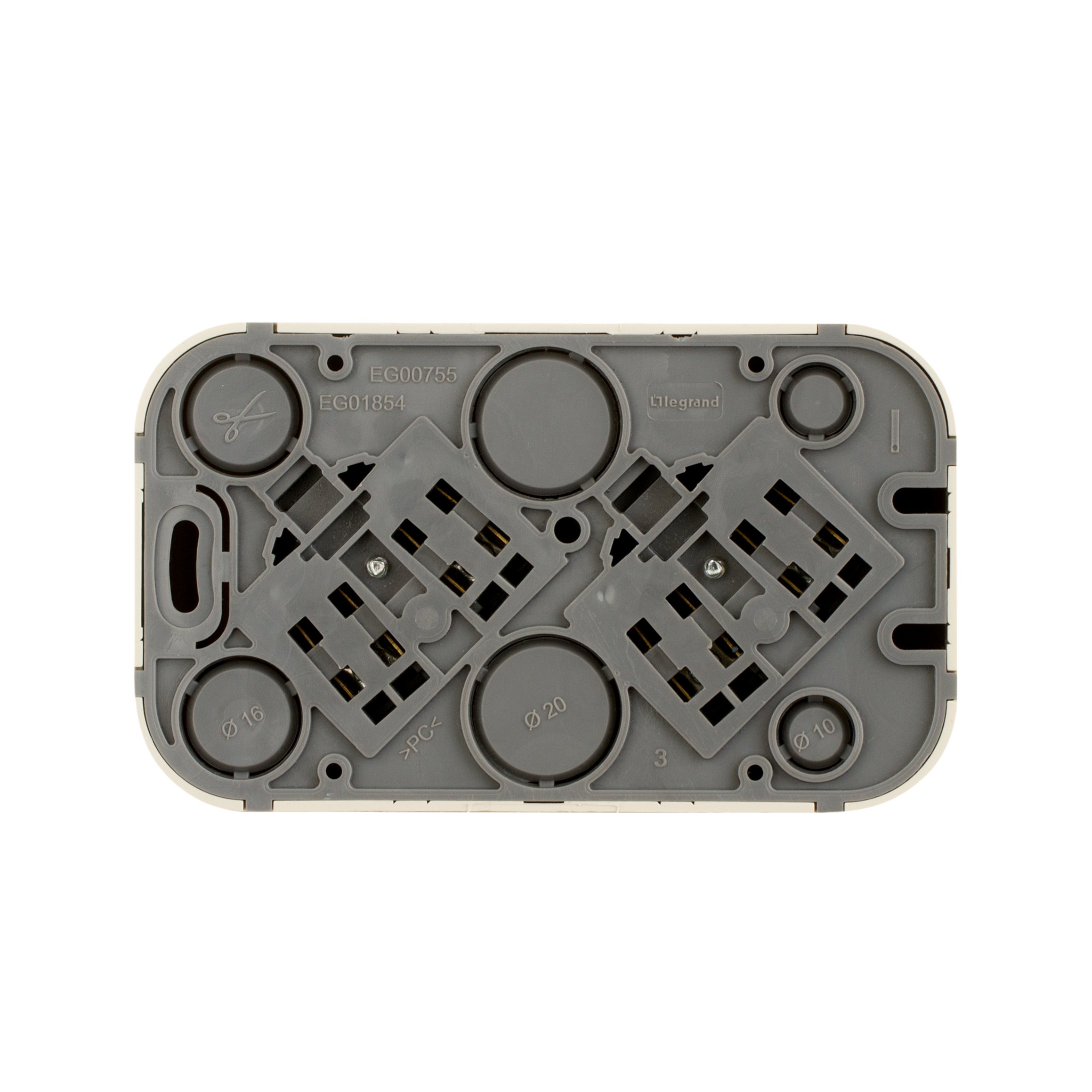 Двойная розетка с заземлением, со шторками Legrand Quteo, цвет слоновая кость, для открытого монтажа. Максимальный ток 16 А, максимальная мощность 3680 Вт. Применяется в зданиях, оборудованных для повышения безопасности проводкой с заземлением (с защитным проводником). Рекомендуются к применению в помещениях в которых могут быть дети. Шторки осуществляют защитную функцию путём ограничения доступа к токоведущим контактам. Доступ открывается только при подключении вилки.