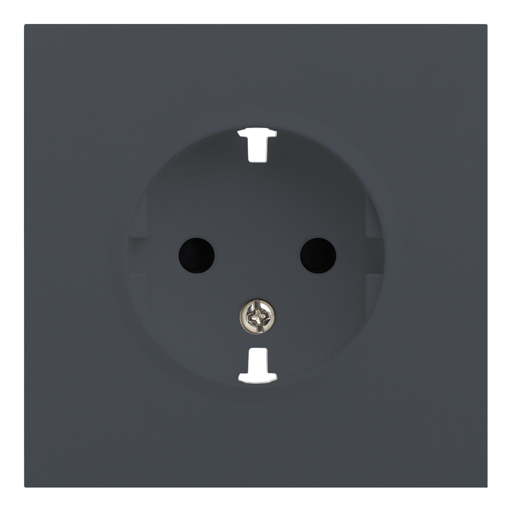 Лицевая панель розетки с заземлением с защитными шторками цвета базальт. Подходит к механизмам арт. 32130 и 32131.