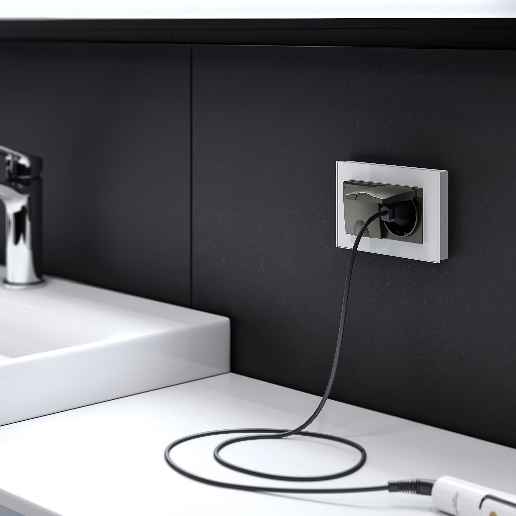 <p>Двойная розетка с крышками – стильное и функциональное решение для установки в местах с повышенной влажностью. Розетка может располагаться возле раковин на кухне, в санузлах и прочих помещениях, где возможно попадание брызг.</p> <p>Благодаря крышкам и внутренней силиконовой прокладке обеспечивается степень пылевлагозащиенности IP44. От случайного попадания посторонних предметов в зону контактной группы защищают шторки.</p> <p>Механизм двойной розетки устанавливается в один стандартный подрозетник. Двойная розетка может быть использована для расширения количества гнезд в таких местах, где невозможно штробление стен, в ограниченных пространствах, а также при проведении кос метического ремонта.</p>