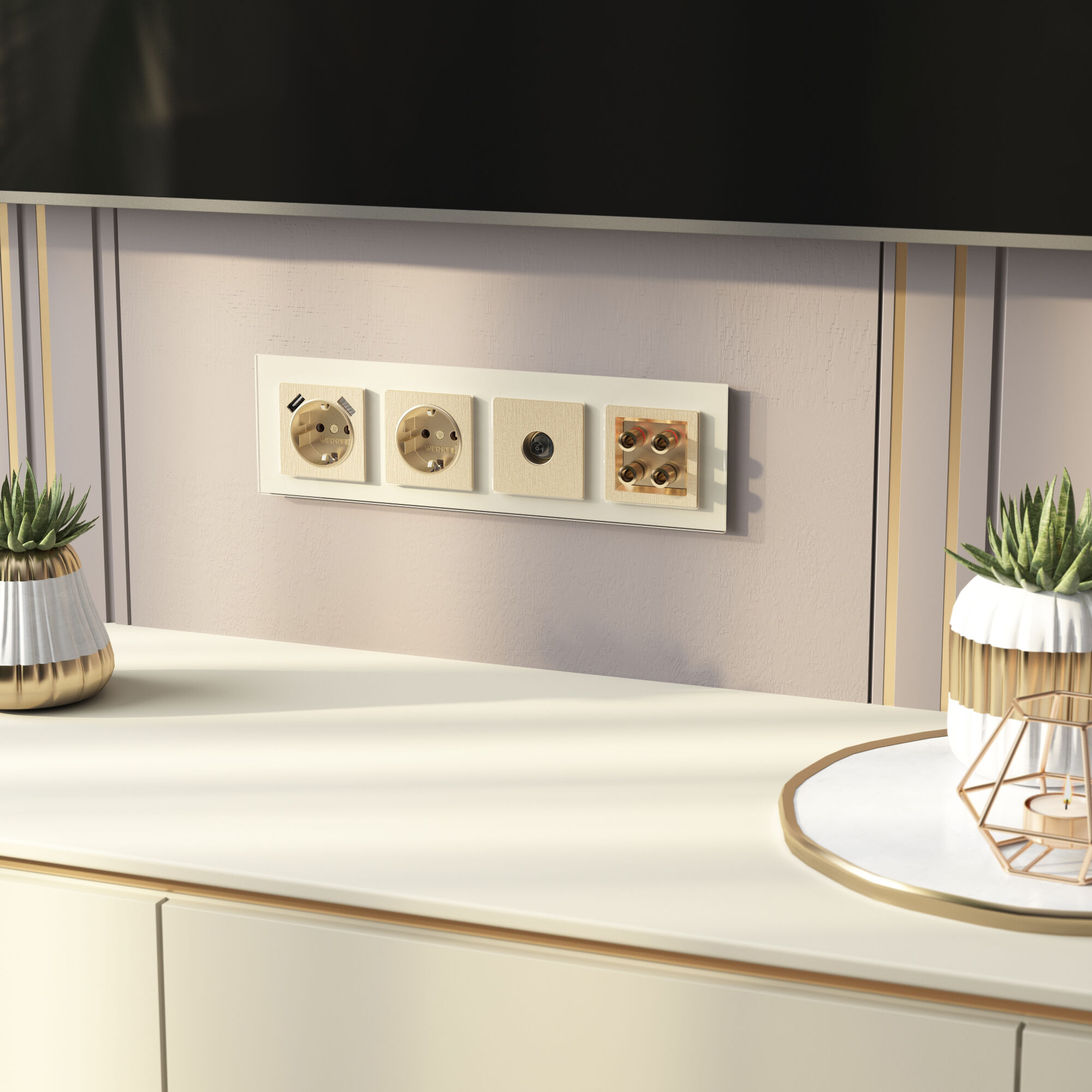 <p>Розетка с заземлением и шторками 220 В 16 A цвета шампань рифленый является необходимым элементом в любом помещении и предназначена для подключения к электрической сети различных приборов. Такие электроустановочные изделия используются в квартирах, частных домах, коммерческих помещениях и устанавливаются в наиболее удобных местах для комфортного использования.</p> <p>Механизм с суппортом из нержавеющей стали устанавливается в подрозетник и надежно фиксируется с помощью винтов и распорных лапок. Розетка оборудована защитными шторками, обеспечивающие дополнительную безопасность.</p> <p>Внешняя лицевая панель выполнена из высококачественного поликарбоната, устойчивого к высоким температурам. Встраиваемая розетка с заземлением совместима со всеми рамками из коллекций Werkel™, характеризуется удобством использования и обеспечивает надежный контакт.</p> <p></p> <p> </p>