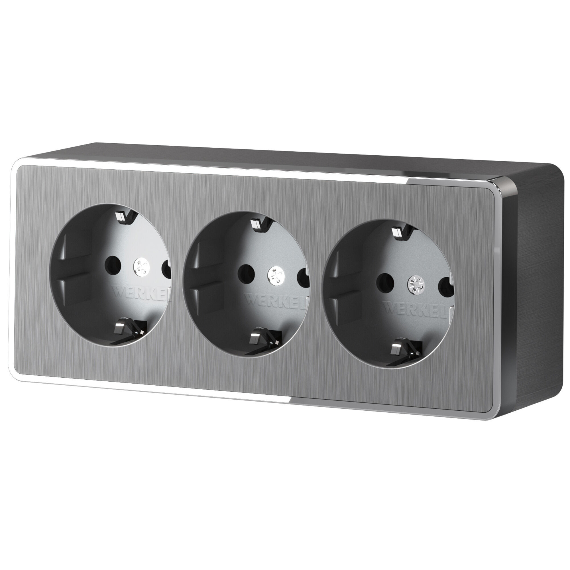 <p>Накладная тройная розетка с заземлением Gallant W5073104 250 В 16 A в цвете графит рифленый предназначена для подключения сразу нескольких электрических приборов бытового назначения. Розетка используются в квартирах, частных домах, коммерческих помещениях и устанавливаются в наиболее удобных местах для комфортного использования.</p> <p>Механизм имеет удобное подключение проводов с сечением от 0.75 мм кв до 2.5 мм кв, осуществляемое с помощью винтовой клеммы. Корпус из ударопрочного поликарбоната устойчив к механическим повреждениям и обладает термостойкостью.</p> <p>Накладной механизм не требуют дополнительных работ по монтажу отверстий и его можно устанавливать на любые поверхности.</p> <p></p>